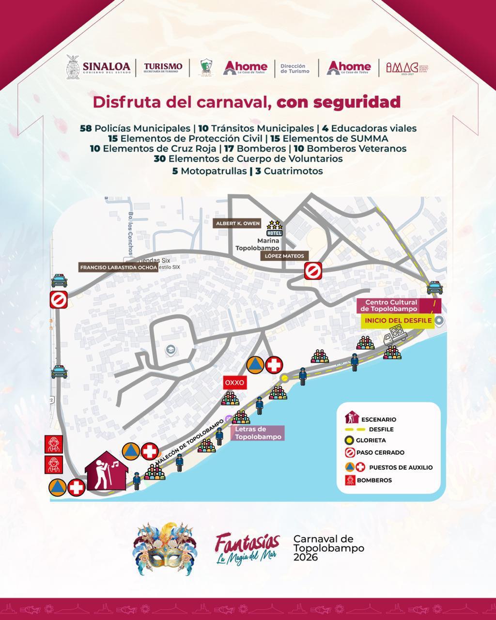 El Gobierno Municipal, a través de la Dirección de Turismo y en coordinación con todas las dependencias, reafirma su compromiso de recibir a cada visitante con calidez y atención, para que disfruten de la alegría y tradición del Carnaval de Topolobampo 2026.