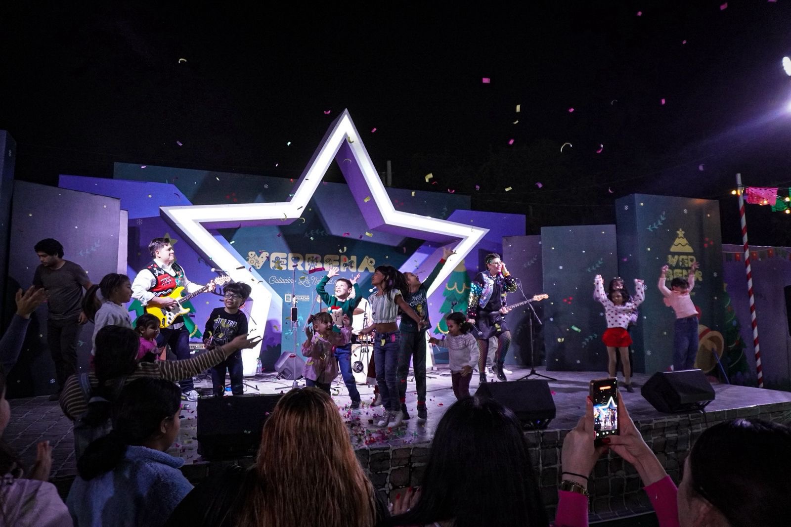 En un ambiente de alegría, inclusión y convivencia familiar, niñas, niños y padres de familia vivieron una noche llena de emociones durante el concierto estelar de rock infantil del grupo Pistache, realizado en la villa navideña de la Verbena Culiacán 2025.