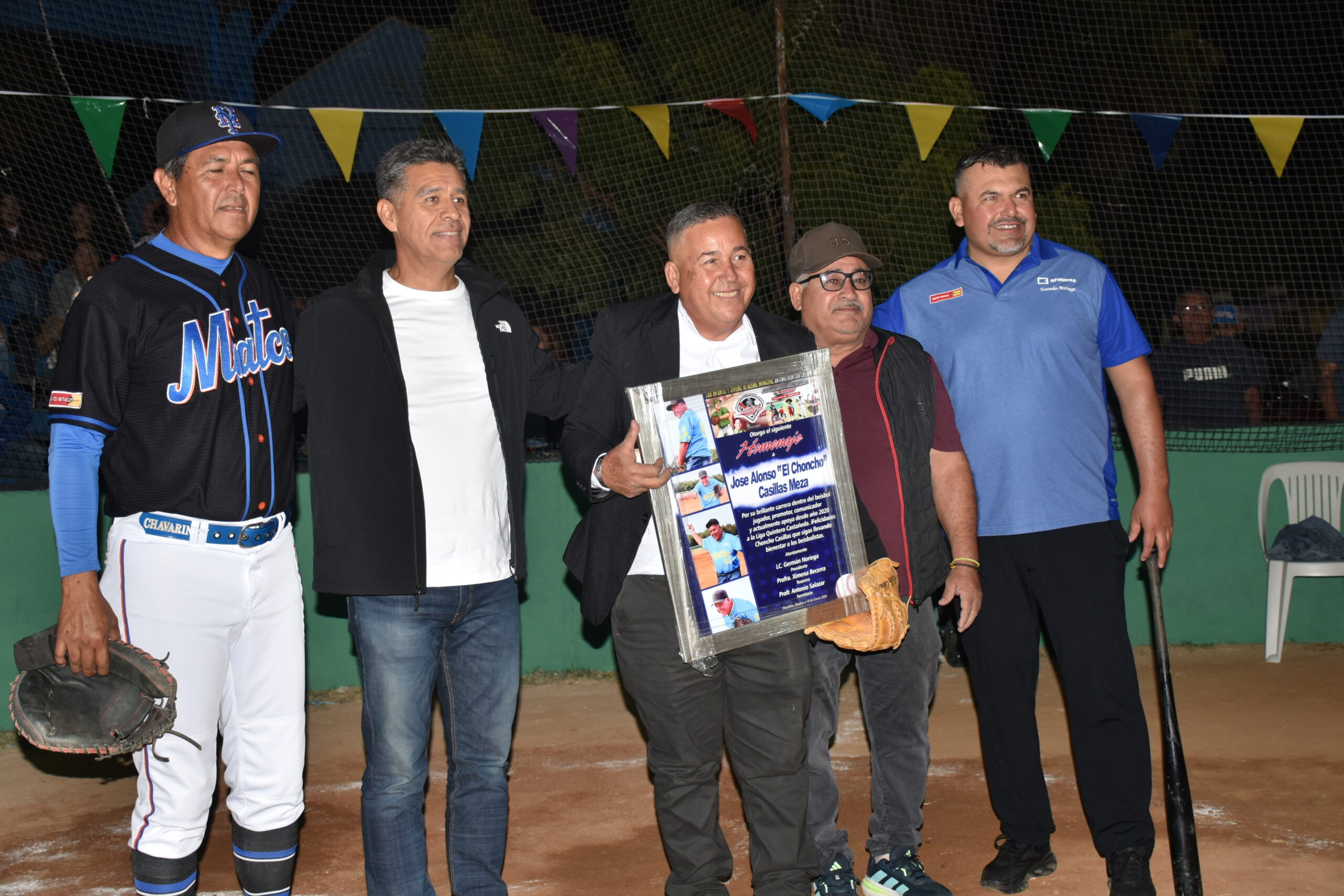 El protocolo inaugural incluyó honores al lábaro patrio, el credo deportivo y la entrega de una placa de reconocimiento al homenajeado. Posteriormente, “El Choncho” Casillas encendió la emoción entre los asistentes al realizar el lanzamiento de la primera bola a home, ante la ovación de aficionados y jugadores.