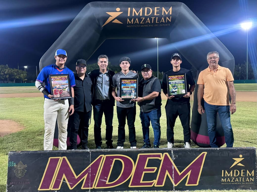 Mazatlán, Sinaloa a 28 de enero de 2026.- Los mejores jugadores de la Liga de Beisbol Juvenil Nuevos Valores Imdem fueron reconocidos en una emotiva ceremonia, previo al encuentro final que tuvo lugar en el campo 1 de la Unidad Deportiva Benito Juárez.