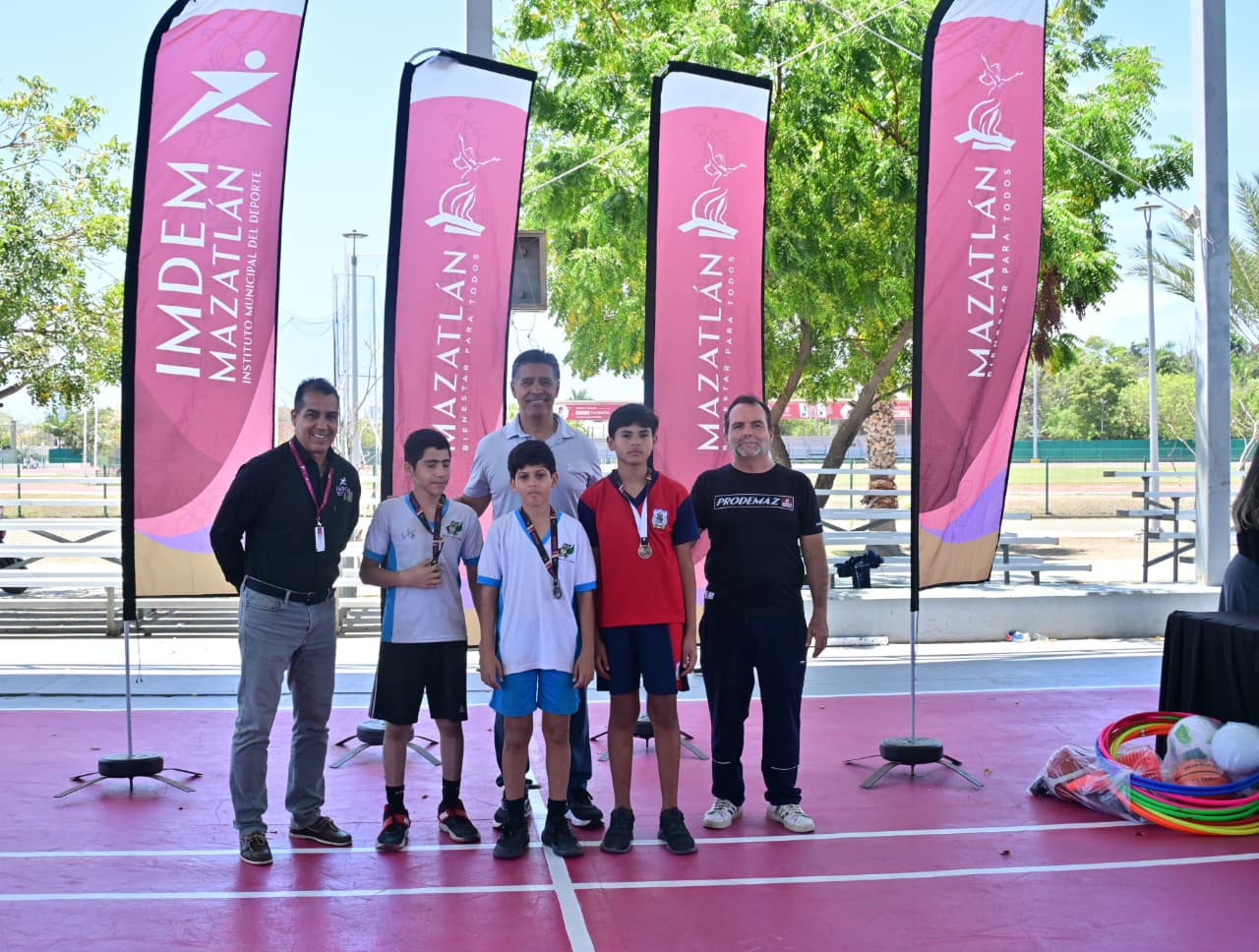 Las 10 escuelas participantes, de nivel primaria y secundaria fueron coordinadas por el personal de Promoción Deportiva del Instituto Municipal del Deporte Mazatlán, para competir en las disciplinas de atletismo, beisbol 5 y handball, en lo que resultó todo un éxito para el director del Instituto, Ezequiel Antonio Mora Bracamontes.