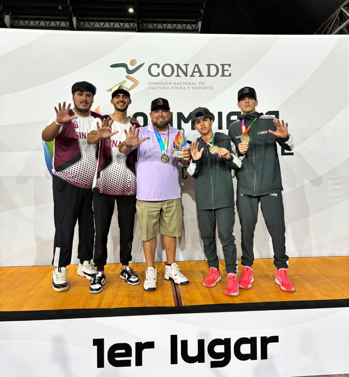 Mazatlán, Sinaloa a 21 de abril de 2026.- La Selección Sinaloa de Beisbol 5, de la que formaron parte los mazatlecos, Carlos Mercado Gutiérrez, Jacob Rodríguez Barraza e Isaac Rodríguez Estrada, se llevó la medalla de oro en la Olimpiada Nacional Conade 2026, en la categoría Juvenil Menor, después de vencer a Chihuahua y Coahuila, en el Auditorio Amado Nervo, de Tepic, Nayarit.