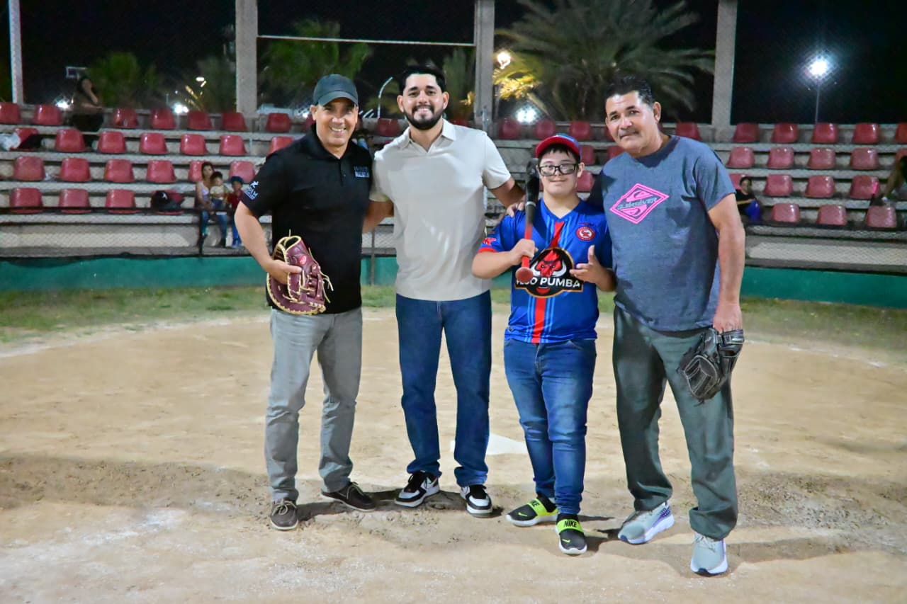Mazatlán, Sinaloa a 15 de abril de 2026.- El beisbol volverá a reinar en el campo número uno de la Unidad Deportiva Benito Juárez, tras la inauguración de la Liga de Beisbol Nocturna 2026, Novatos y Tercera Fuerza, realizada con el apoyo del Gobierno de Mazatlán que encabeza la Presidenta Municipal, Estrella Palacios Domínguez.