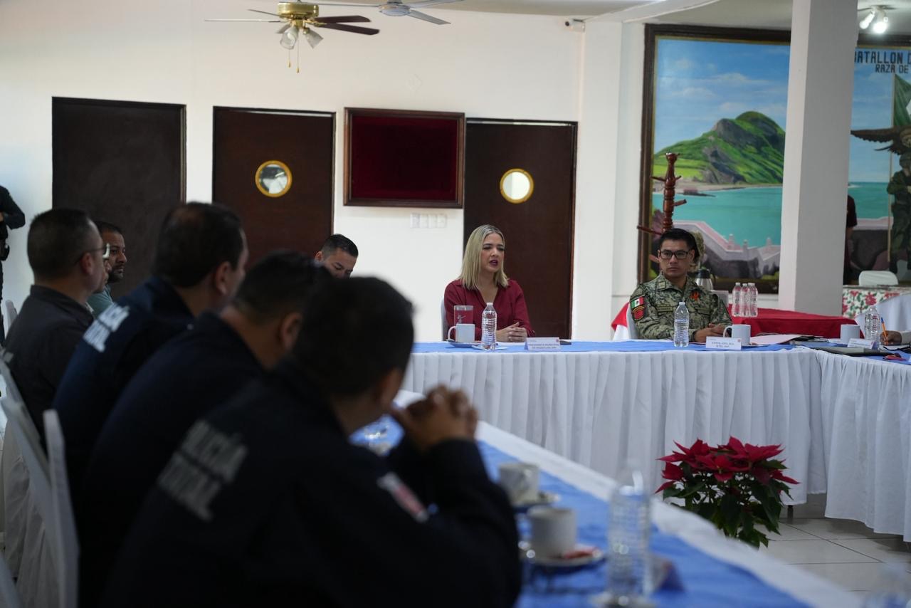 Mazatlán, Sinaloa, 9 de diciembre de 2025.– La Presidenta Municipal, Estrella Palacios Domínguez, participó la mañana de este martes en una nueva sesión de la Mesa Regional de Seguridad y Construcción de Paz, realizada en las instalaciones de la Tercera Región Militar. Durante el encuentro, autoridades de los tres niveles de gobierno revisaron las estrategias operativas que se implementarán durante la próxima temporada decembrina.
