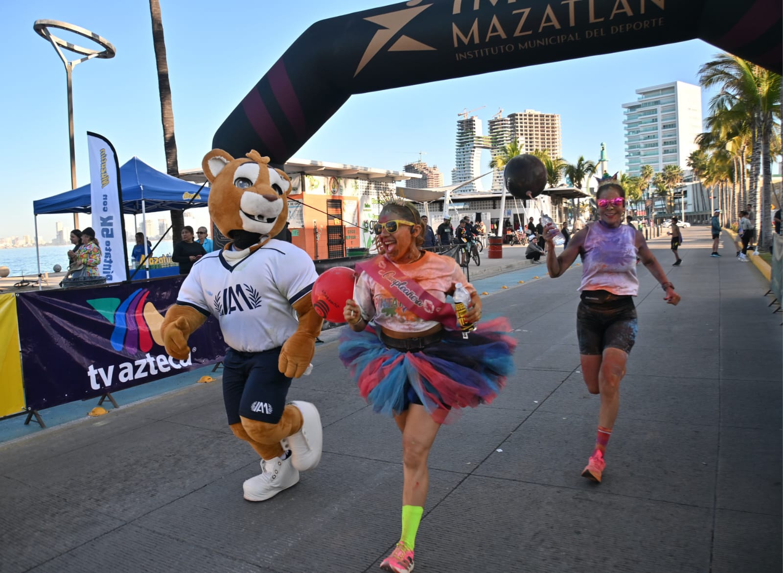 En representación de la Presidenta Municipal, Estrella Palacios Domínguez, el director del Instituto Municipal del Deporte Mazatlán, Ezequiel Mora Bracamontes, encabezó el banderazo de salida en Playa Norte, acompañado por Adis Sánchez Palomares, gerente de ventas de TV Azteca, y Rodrigo de la Grana, director de marca de Mazatún.