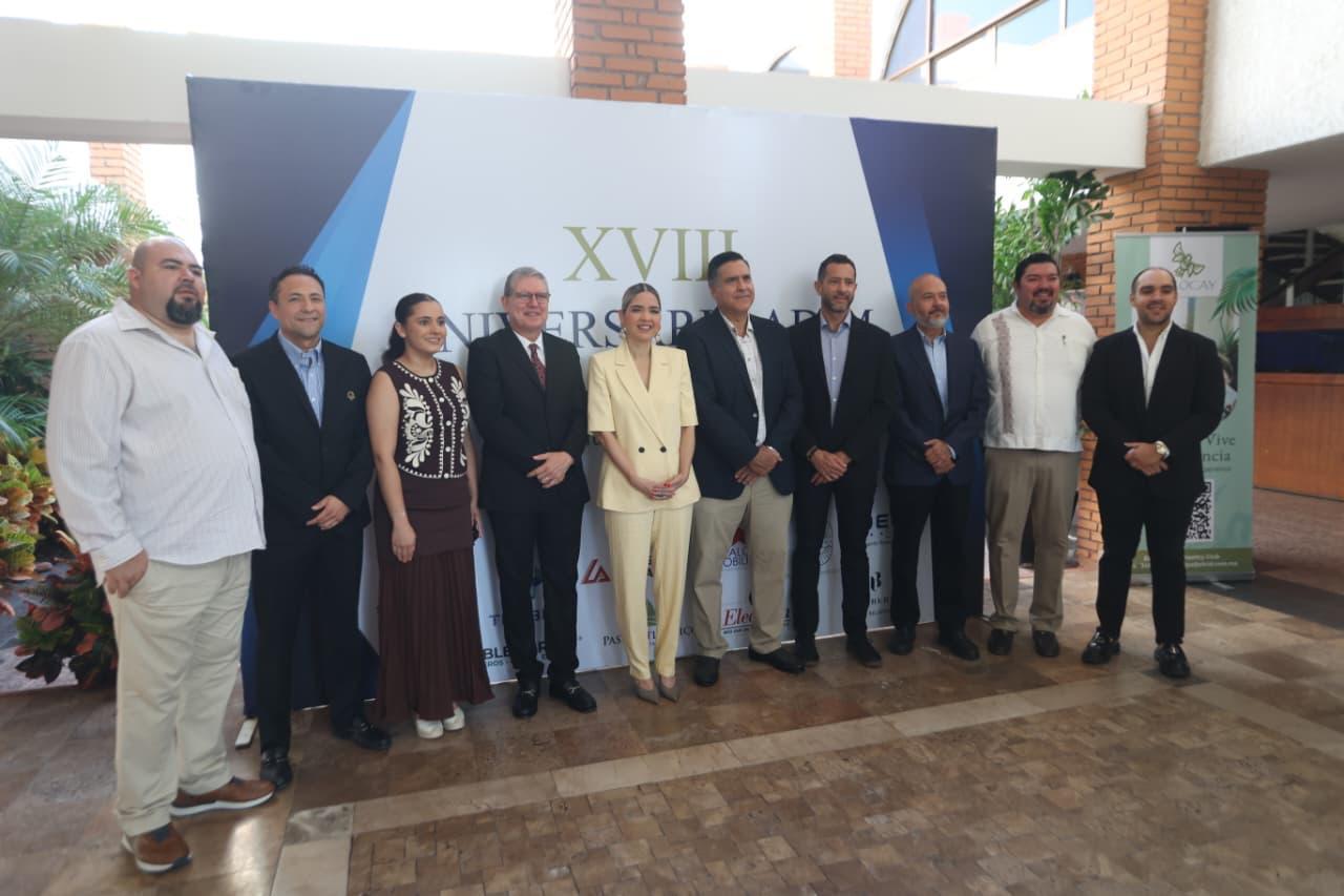 Mazatlán, Sinaloa, 29 de octubre de 2025.– La Presidenta Municipal, Estrella Palacios Domínguez, encabezó la ceremonia por el 18 aniversario de la Asociación de Desarrolladores Inmobiliarios de Mazatlán (ADIM), evento que reunió a autoridades estatales y municipales, dirigentes de organismos camarales, empresarios e integrantes del sector inmobiliario.