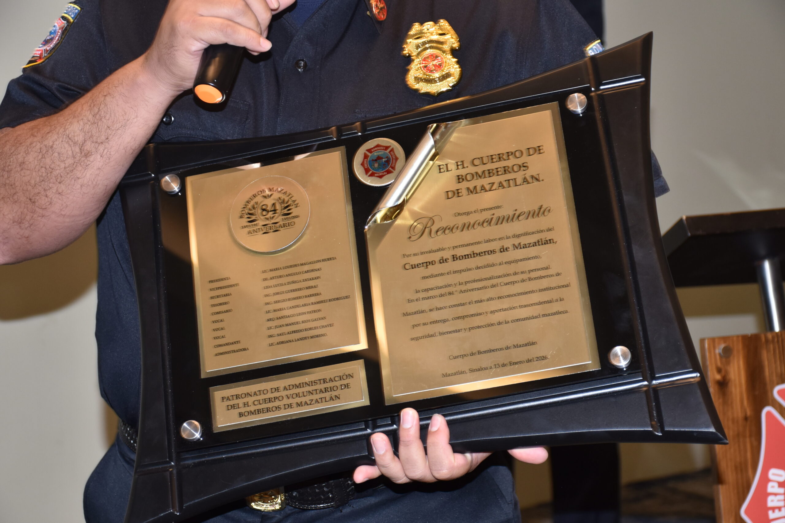 El evento fue atendido por Moisés Ríos Pérez, secretario del Ayuntamiento, en representación de la presidenta municipal, quien destacó la valentía, disciplina y vocación de servicio de las y los bomberos que durante 84 años han protegido la vida y el patrimonio de las familias mazatlecas.