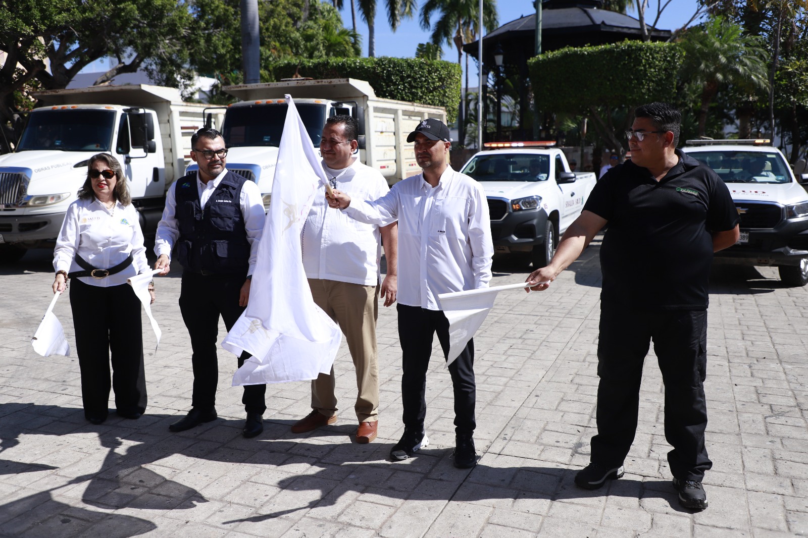 Mazatlán, Sinaloa, 3 de febrero de 2026.- Con el objetivo de reforzar las acciones de prevención y combate al dengue, se llevó a cabo el banderazo oficial simultáneo a nivel nacional de la Campaña Eliminación de Criaderos 2026, bajo el lema “Todos contra el dengue”, impulsado por el Gobierno de México, encabezado por la Presidenta de la República, Claudia Sheinbaum Pardo, que busca la participación activa de la ciudadanía para eliminar posibles focos de reproducción del mosquito transmisor.