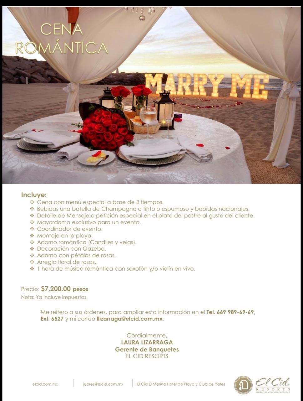 La Cena Romántica tiene un costo de 7,200 pesos, impuestos incluidos, y se ofrece en El Cid Marina Beach Hotel – Beach Club, consolidándose como una opción ideal para celebrar San Valentín, aniversarios o cualquier ocasión especial durante febrero.