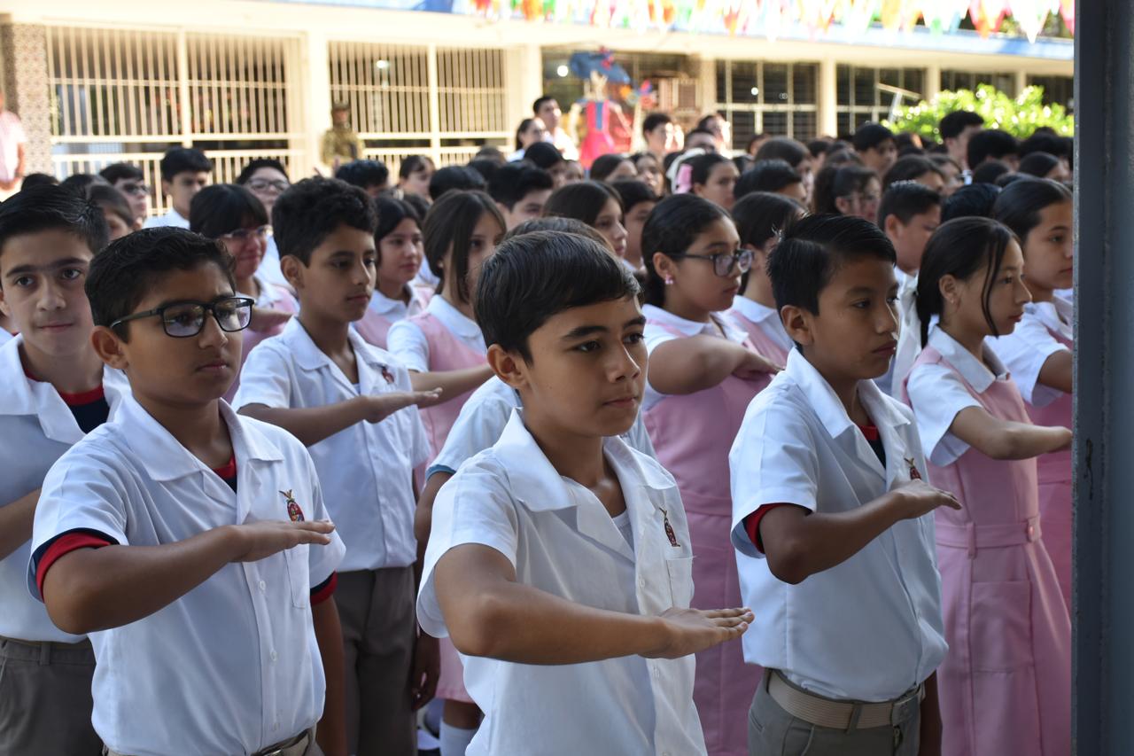 La ceremonia contó con la participación de la alumna Rosalina Noemí Alcocer, quien rindió el juramento a la bandera, mientras que el Presidente de la Asociación de Exalumnos, Alejandro Camacho Mendoza, ofreció el mensaje de bienvenida. Por su parte, el Director del plantel, Wenceslao Ríos González, agradeció la presencia de las autoridades y destacó la importancia de mantener vivo el espíritu cívico en la juventud. Los alumnos también presentaron el baile folklórico “El pato asado” y las alumnas Renata Gutiérrez y Samantha declamaron una poesía alusiva al amor a la patria.