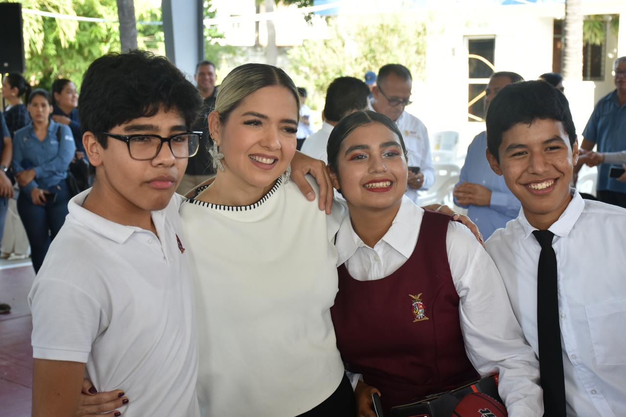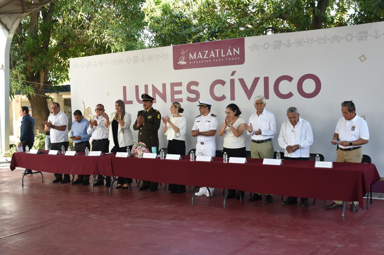 En el Lunes Cívico, la Presidenta Municipal reconoce el compromiso educativo del plantel y su aportación a la formación de generaciones de mazatlecos