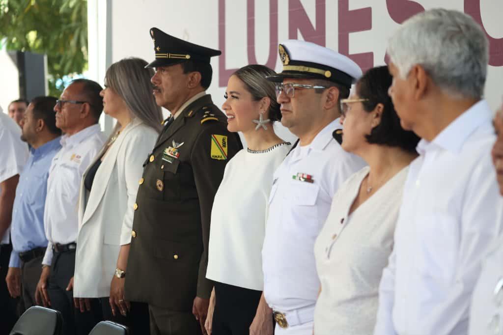 La Presidenta estuvo acompañada por la Síndica Procuradora, Minerva Osuna Zavala; el Secretario del Ayuntamiento, Moisés Ríos Pérez; la Diputada Local Karla Daniela Ulloa Rodríguez; autoridades militares, navales y educativas, así como regidoras, regidores y funcionarios del Gabinete Municipal.