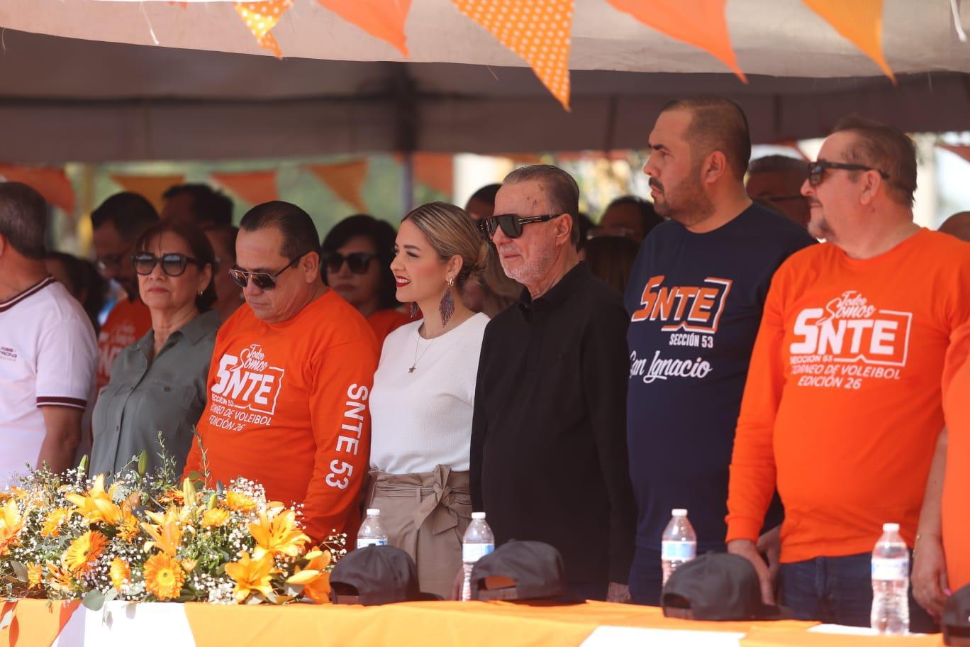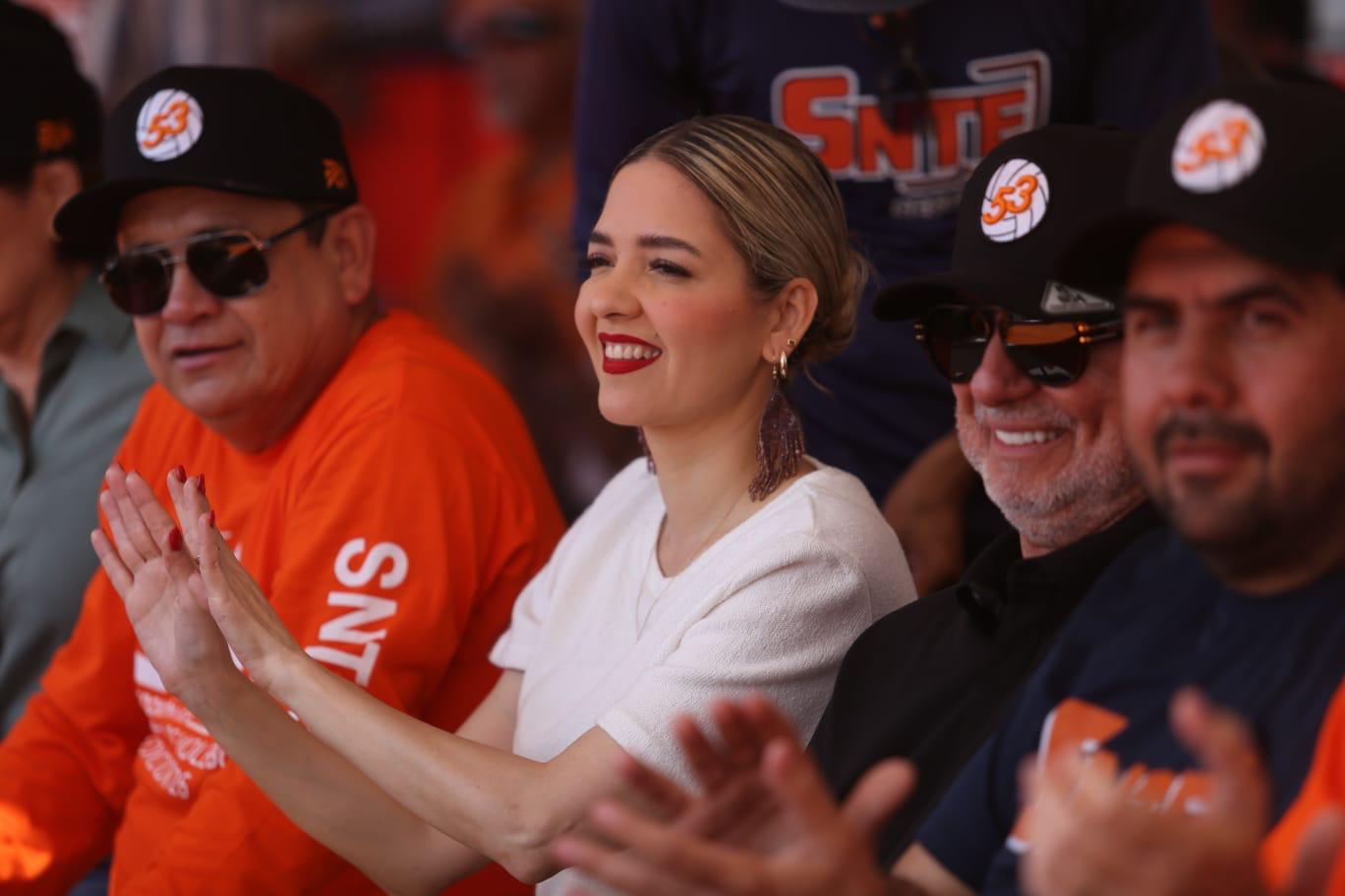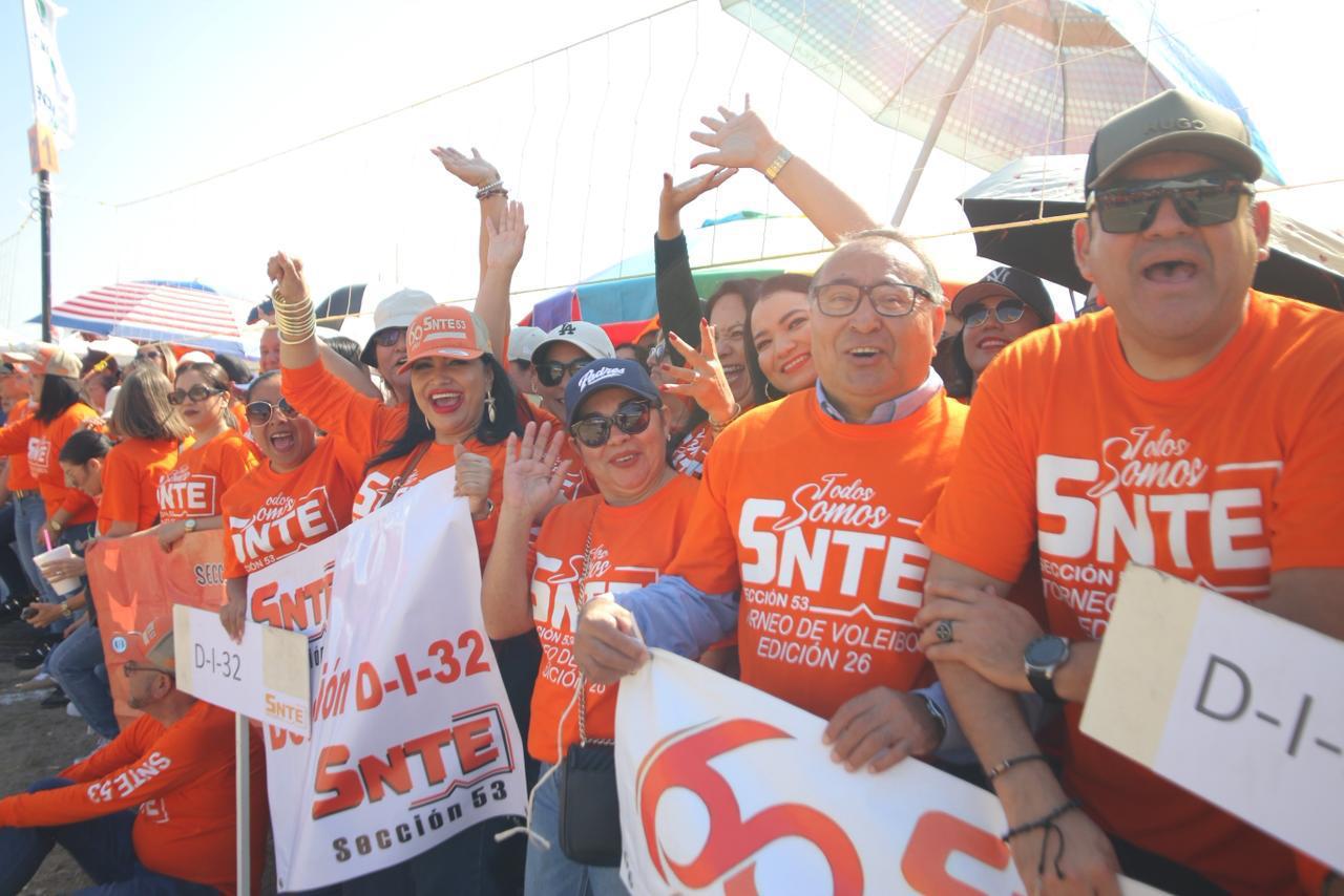 Mazatlán, Sinaloa, 14 de marzo de 2026.– La Presidenta Municipal, Estrella Palacios Domínguez, encabezó la mañana de este sábado la inauguración de la edición número 26 del Torneo Regional Magisterial de Voleibol del SNTE Sección 53, evento deportivo que reúne a alrededor de 3 mil jugadores provenientes de equipos de distintos municipios del sur y centro del estado de Sinaloa.