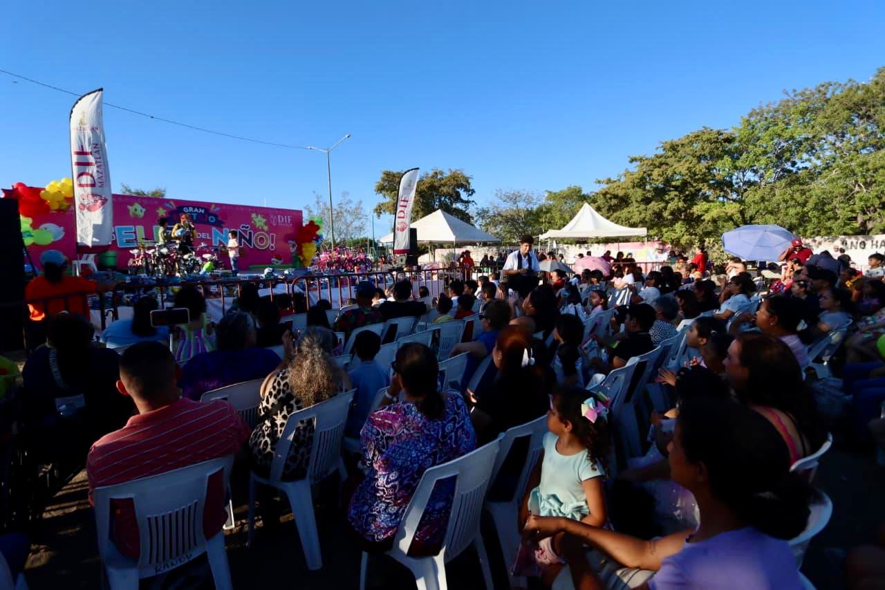 Mazatlán, Sinaloa, 27 de abril de 2026.- En medio de sonrisas, juegos y un ambiente lleno de entusiasmo, este lunes dieron inicio los festejos del Día del Niño organizados por el Gobierno Municipal y el Sistema DIF Mazatlán, con un gran evento encabezado por la Presidenta Estrella Palacios Domínguez en la plazuela de la colonia Francisco Villa.