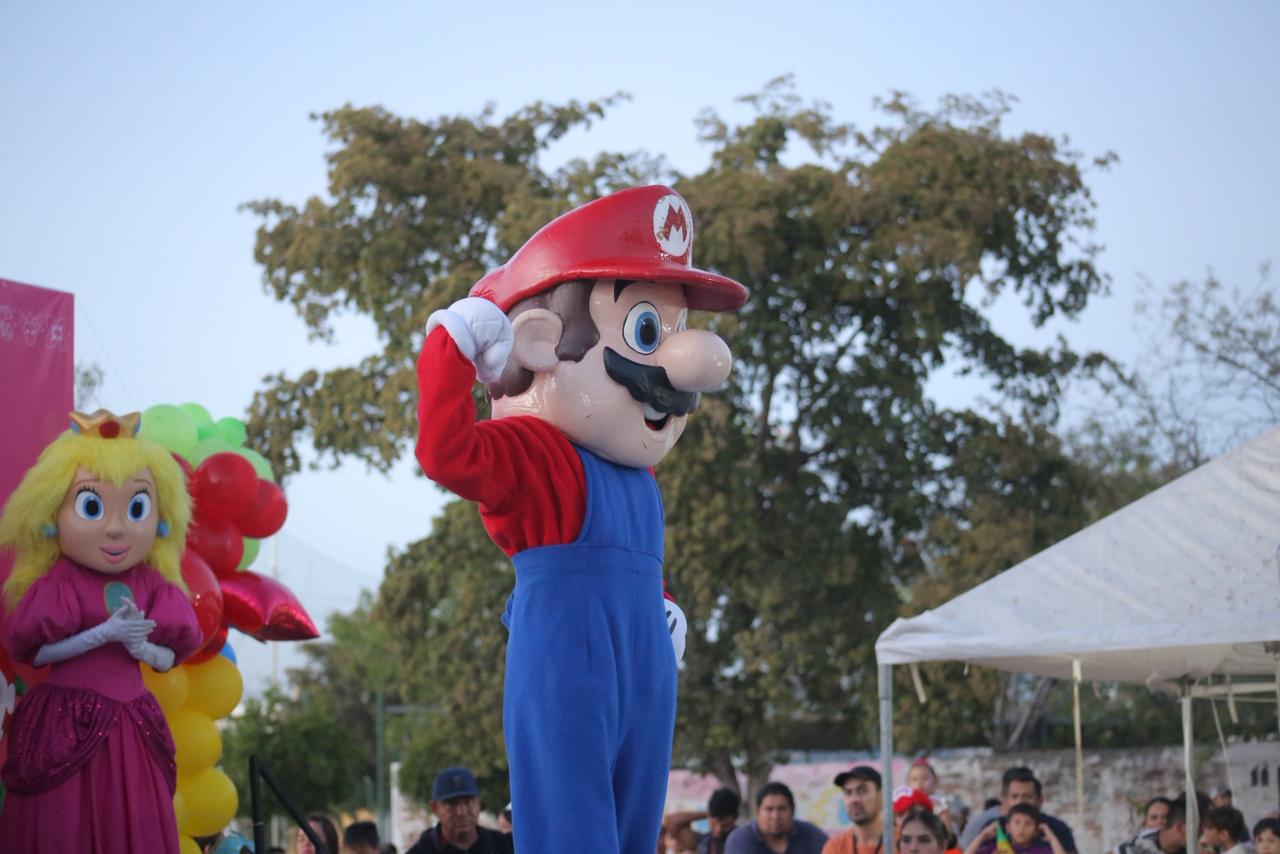 La fiesta estuvo amenizada por el payaso Triki Trakes, quien puso a reír a chicos y grandes con su divertido espectáculo. Además, se realizó una rifa de regalos, así como la entrega de pizzas, juguetes, palomitas y bebidas, generando momentos de emoción y alegría entre las y los asistentes. Uno de los momentos más esperados fue la presentación del show de Super Mario Bros, que llenó de energía y diversión el lugar, arrancando aplausos y sonrisas de las niñas y niños presentes.