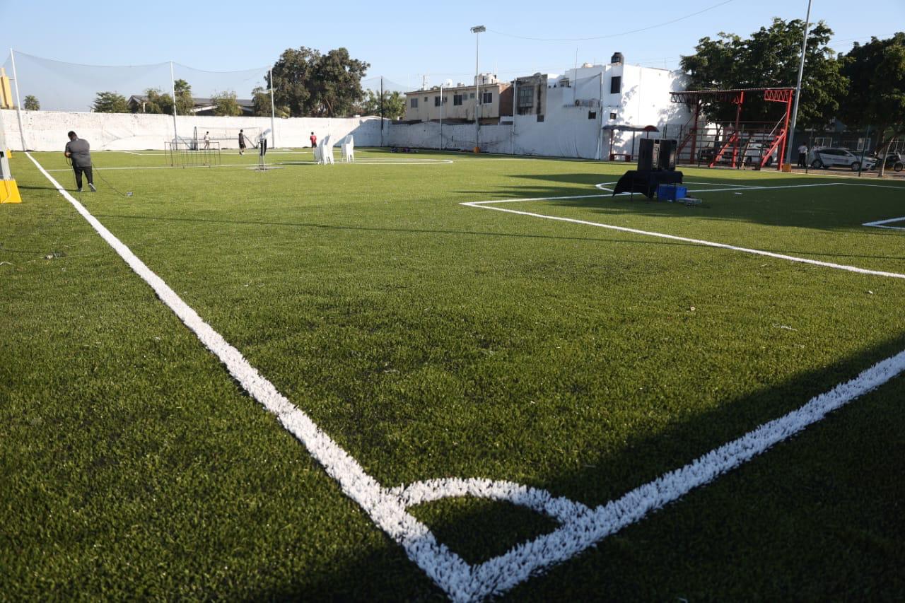 Mazatlán, Sinaloa, 26 de diciembre de 2025.- El Gobierno de Mazatlán, que encabeza la Presidenta Municipal, Estrella Palacios Domínguez, realizó la entrega de la rehabilitación de la cancha de futbol 7 de la colonia López Mateos, en beneficio directo de más de 450 deportistas y sus familias.