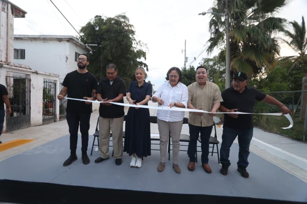 “Les comparto que llevamos siete calles aquí en la Pancho Villa, les comparto que tenemos concluidas 5, que son avenida Carlos Canseco, calle Tomás Urbina, calle Loreto Barraza, calle José Rodríguez y tenemos también la calle José Gómez, y está en proceso la calle Toma de Agua Prieta y en proceso también la María Elena Gómez”, precisó la primera mujer Presidenta de Mazatlán.
