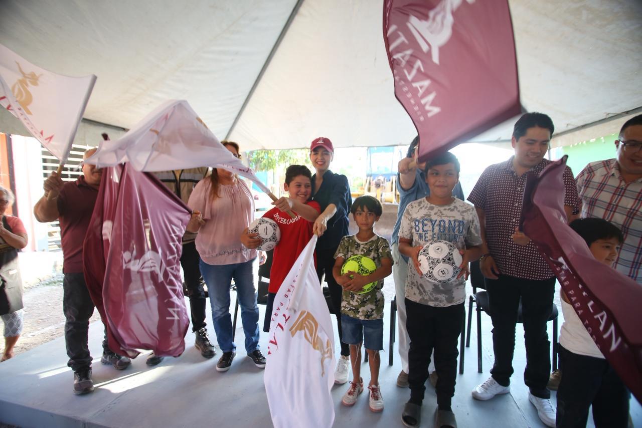 Mazatlán, Sinaloa, 23 de marzo de 2026.- Con la certeza de que el bienestar y la seguridad son fundamentales para elevar la calidad de vida de la población, la Presidenta Estrella Palacios Domínguez dio el banderazo de inicio de obra a dos nuevos proyectos de pavimentación, donde el Gobierno de Mazatlán ha programado una inversión de 5 millones 653 mil 269 pesos, en beneficio de familias que habitan en las colonias Francisco Villa y Libertad de Expresión.