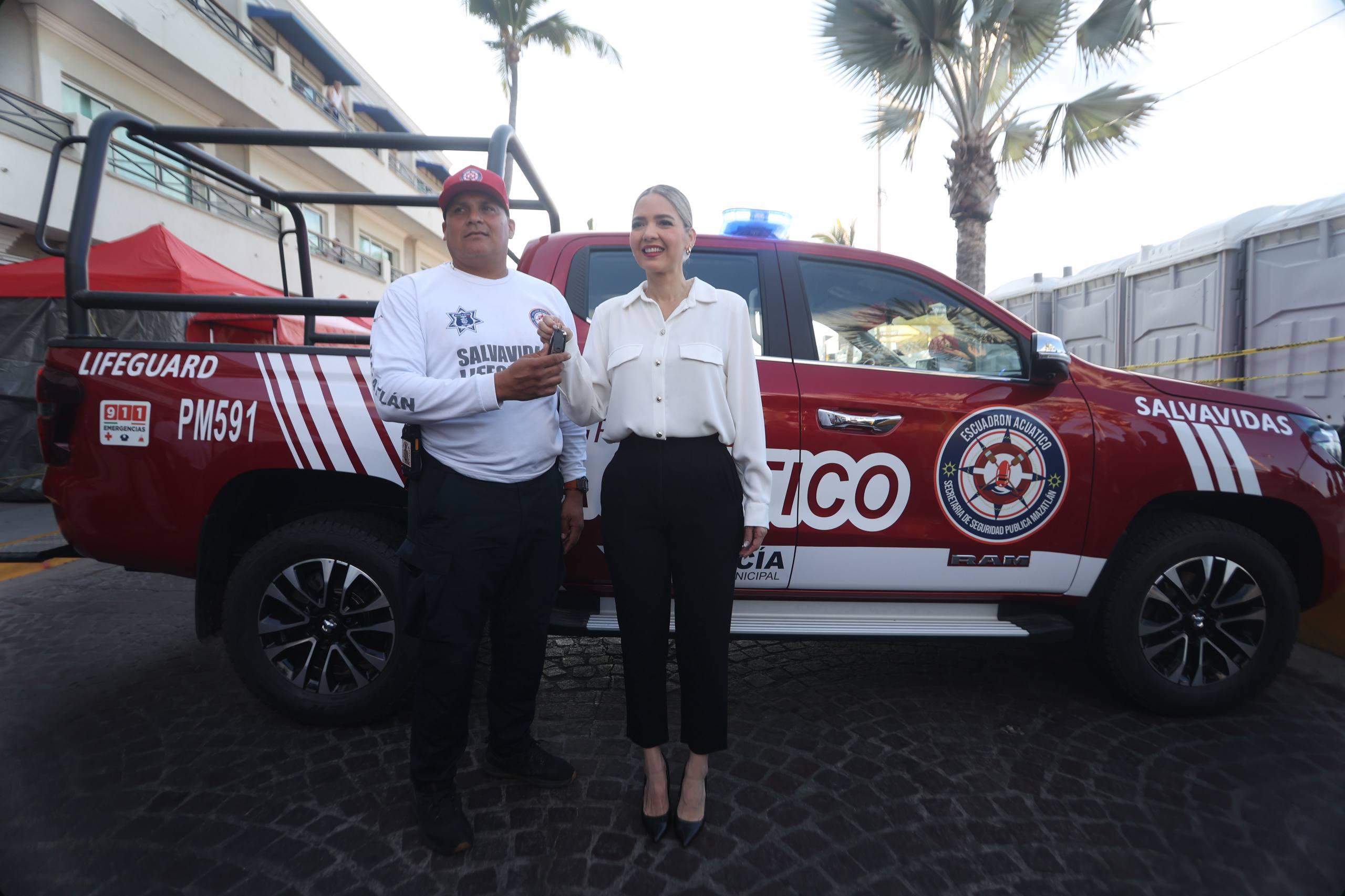 Las unidades y equipamiento entregado a la corporación preventiva consta de tres patrullas destinadas al área operativa, cinco motocicletas, 10 bicicletas y dos grúas para la Unidad de Vialidad, así como 200 chalecos antibalas, lámparas y fornituras. Asimismo, para fortalecer la atención y respuesta a turistas y locales que visitan la zona costera, el Escuadrón de Salvamento Acuático de Mazatlán recibió un nuevo vehículo.