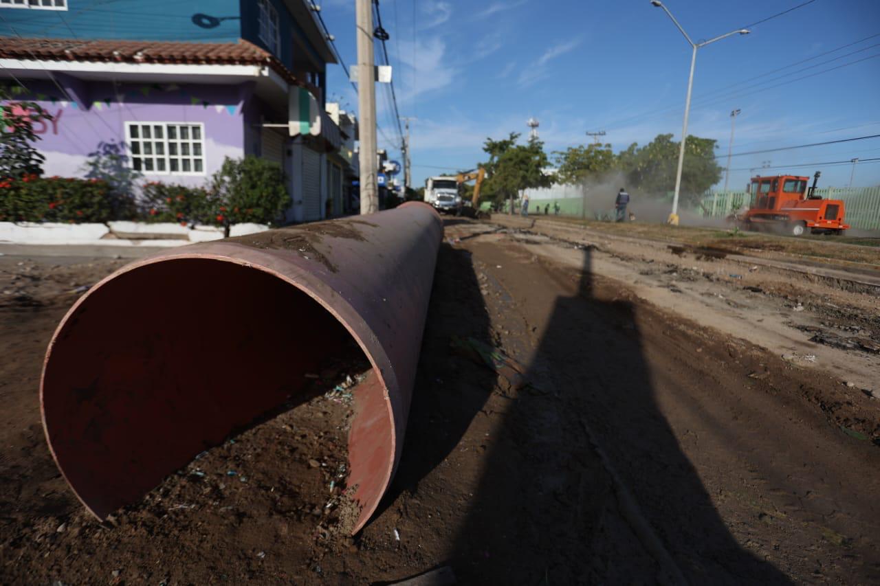 Satisfecha de ver el óptimo avance del proyecto, que inició en el cruce de las avenidas Internacional y México 68, para continuar por Juan Pablo II y ahora prosigue en la avenida Insurgentes hasta la calle Estero, destacó que este es uno de dos tramos de grandes colectores que se están rehabilitando en la ciudad; el otro está en el sector de Villa Verde, el cual presenta ya un 95 por ciento de avance general.