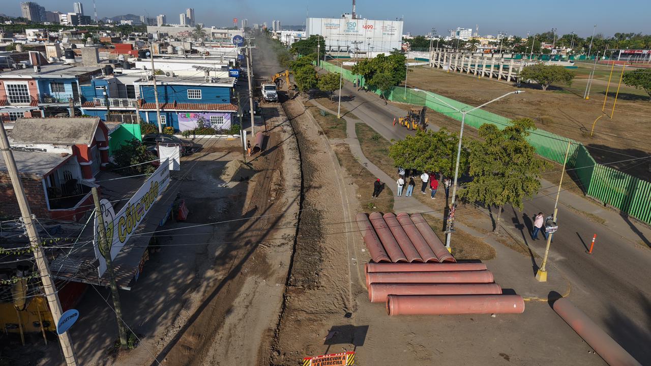 Mazatlán, Sinaloa, 6 de enero de 2026.- Los trabajos de rehabilitación del Colector Jabalíes Norte, en la avenida Insurgentes, llevan ya un avance del 88 por ciento, aseguró la Presidenta Estrella Palacios Domínguez, luego de realizar un recorrido de supervisión de obras en las inmediaciones de la colonia Toledo Corro y la Unidad Deportiva Juárez, la mañana de hoy martes.