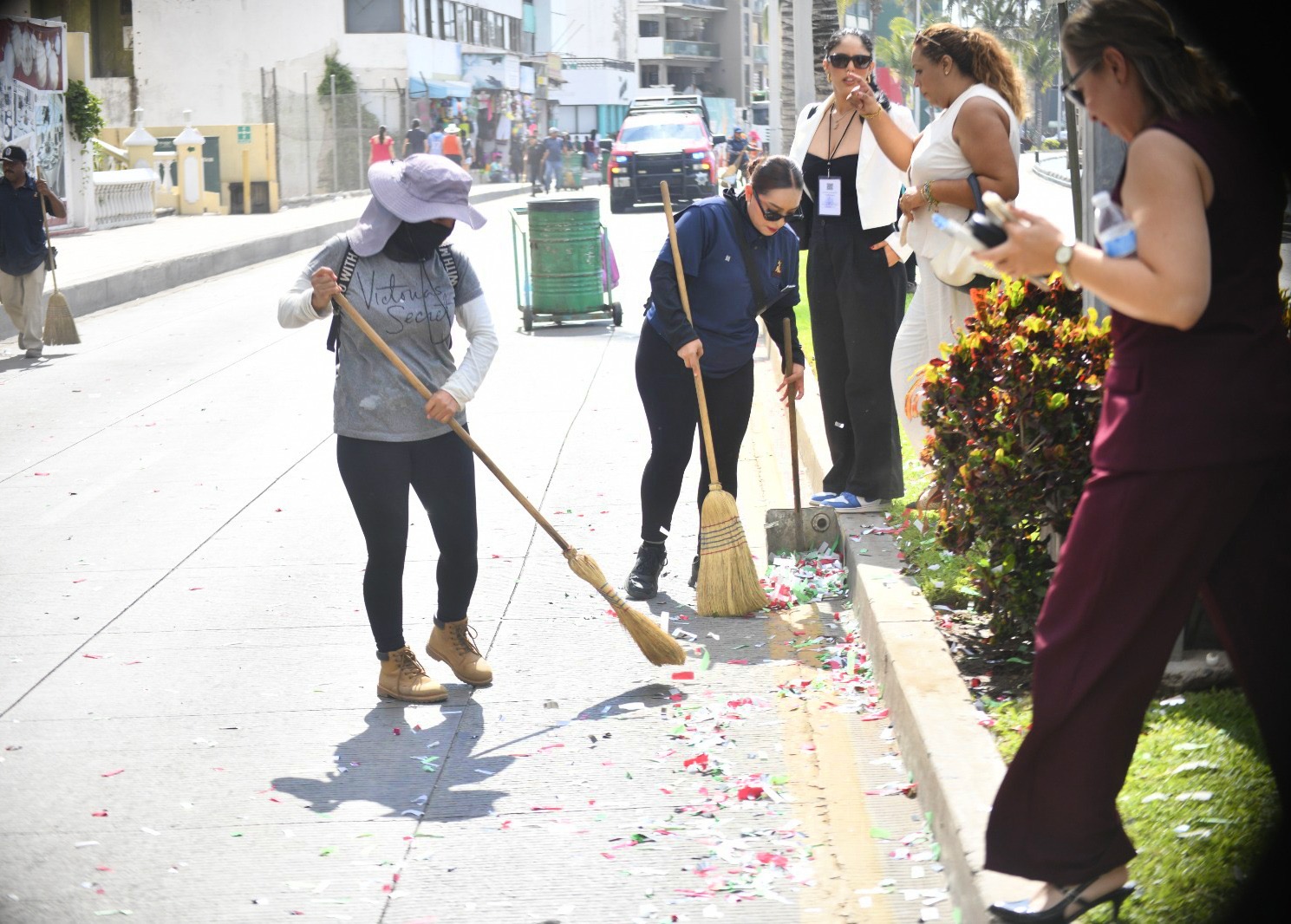 Tras el paso de los contingentes, el personal levantó los desechos generados —principalmente papel, confeti, plástico y corcho— para su adecuada disposición final, logrando que el malecón recuperara rápidamente su imagen habitual en beneficio de residentes y turistas.