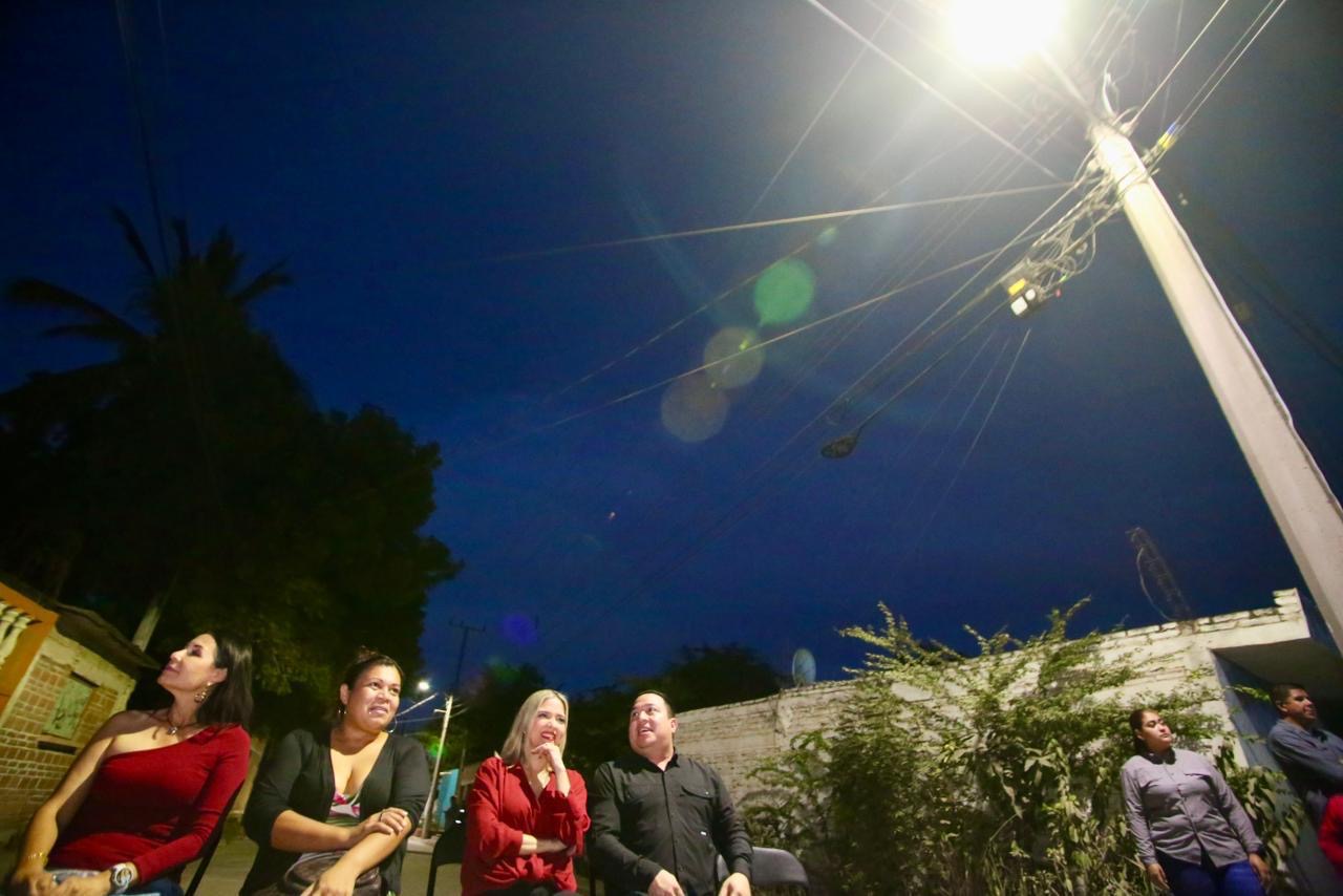 Mazatlán, Sinaloa, 9 de diciembre de 2025.– A través del programa “Mazatlán Brilla”, la Presidenta Municipal, Estrella Palacios Domínguez, llevó a cabo el encendido simultáneo de 190 luminarias ahorradoras LED en el Ejido El Castillo, un proyecto que forma parte de las acciones para modernizar y dignificar los servicios públicos. “Por eso hacemos obras con gran sentido social, porque estamos buscando que mejore la calidad de vida de las personas, pero sobre todo, mejore la seguridad. Calles más iluminadas, además de ser calles más dignas, son calles más seguras para los nuestros. Por eso vamos a continuar con este gran programa ‘Mazatlán Brilla’, en el cual nos propusimos este 2025 terminar con más de 10 mil lámparas repuestas. Estamos trabajando con mucha intensidad”, externó Estrella Palacios.