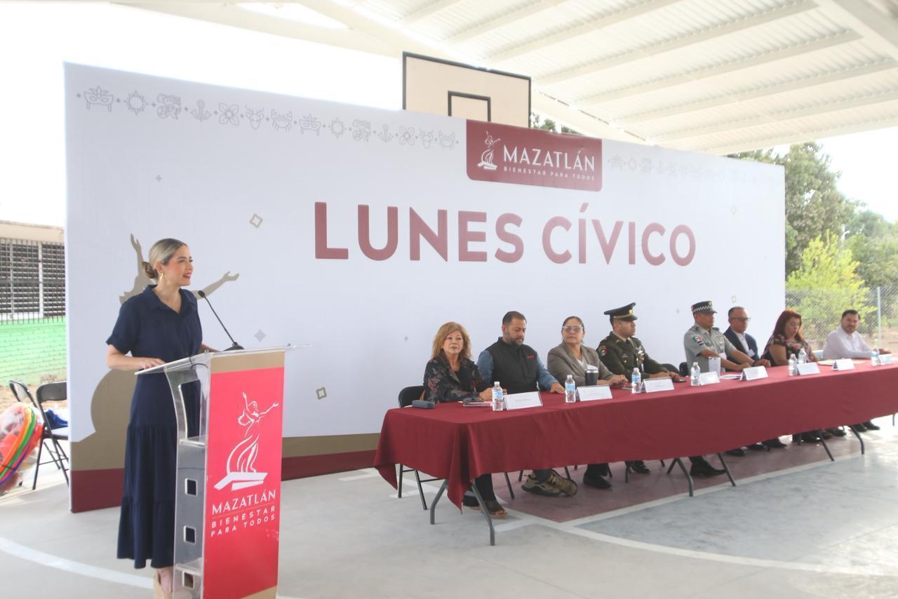 Siqueros, Mazatlán, Sinaloa, 19 de enero de 2026.– En el marco del primer Lunes Cívico del año, que realizó el Gobierno de Mazatlán en la Escuela Telesecundaria Número 65, ubicada en la sindicatura de Siqueros, la Presidenta Municipal, Estrella Palacios Domínguez, refrendó su compromiso con la educación como eje fundamental para el bienestar y la transformación social, porque las y los jóvenes son parte de una generación que vive un momento histórico, en el que México decidió poner a la educación y a sus estudiantes en el centro de las políticas públicas.