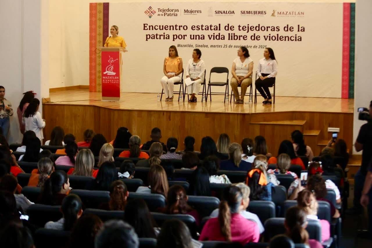 Mazatlán, Sinaloa, 25 de noviembre de 2025.– La Presidenta Municipal, Estrella Palacios Domínguez, inauguró oficialmente los 16 Días de Activismo, campaña que inicia cada 25 de noviembre —Día Internacional para la Eliminación de la Violencia contra la Mujer— y concluye el 10 de diciembre —Día de los Derechos Humanos—. El acto tuvo lugar durante el Encuentro Estatal de Tejedoras de la Patria por una Vida Libre de Violencia, que reunió a cientos de mujeres en el Auditorio del Palacio Federal.