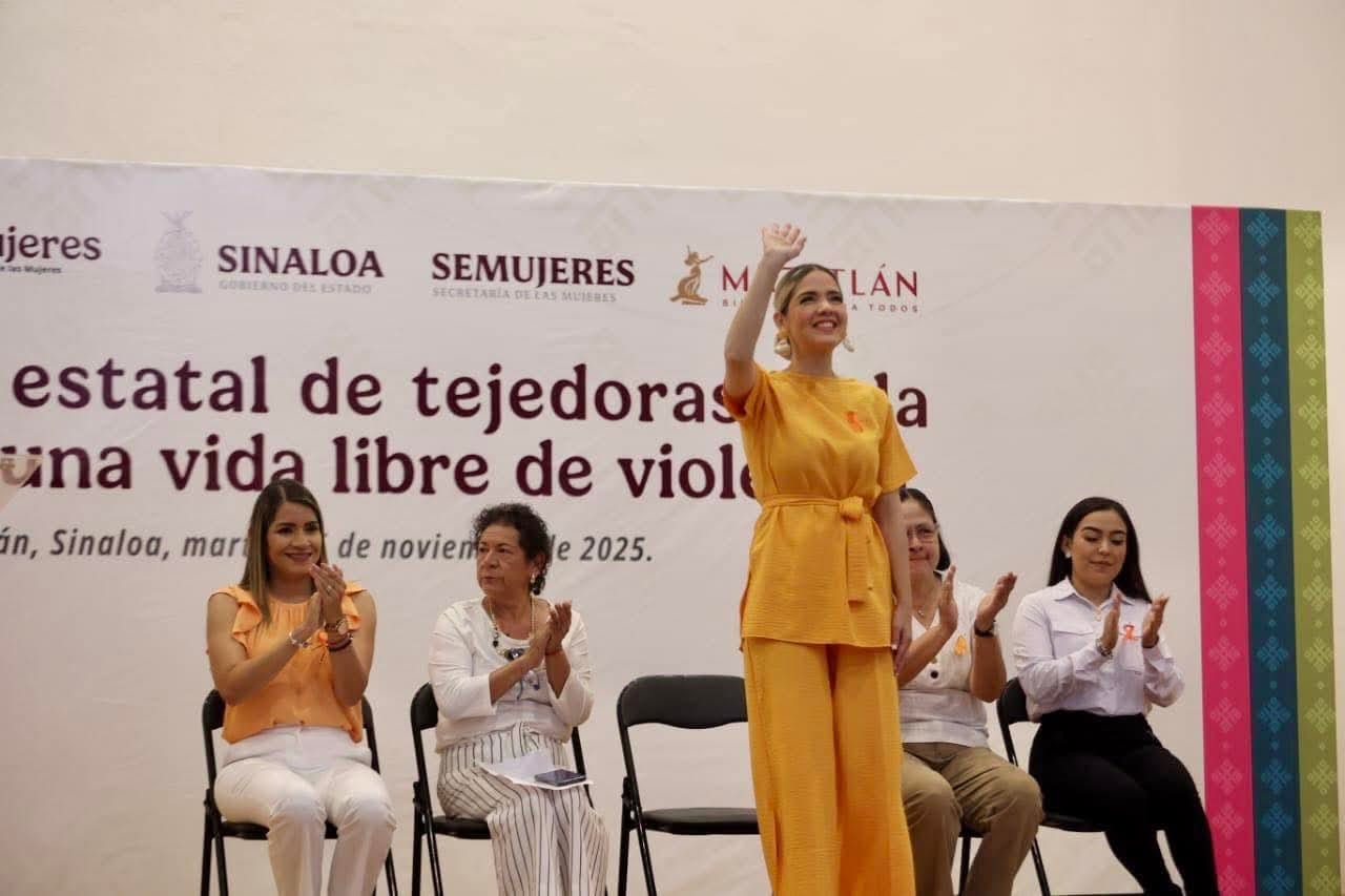 Mazatlán, Sinaloa, 25 de noviembre de 2025.– La Presidenta Municipal, Estrella Palacios Domínguez, inauguró oficialmente los 16 Días de Activismo, campaña que inicia cada 25 de noviembre —Día Internacional para la Eliminación de la Violencia contra la Mujer— y concluye el 10 de diciembre —Día de los Derechos Humanos—. El acto tuvo lugar durante el Encuentro Estatal de Tejedoras de la Patria por una Vida Libre de Violencia, que reunió a cientos de mujeres en el Auditorio del Palacio Federal.