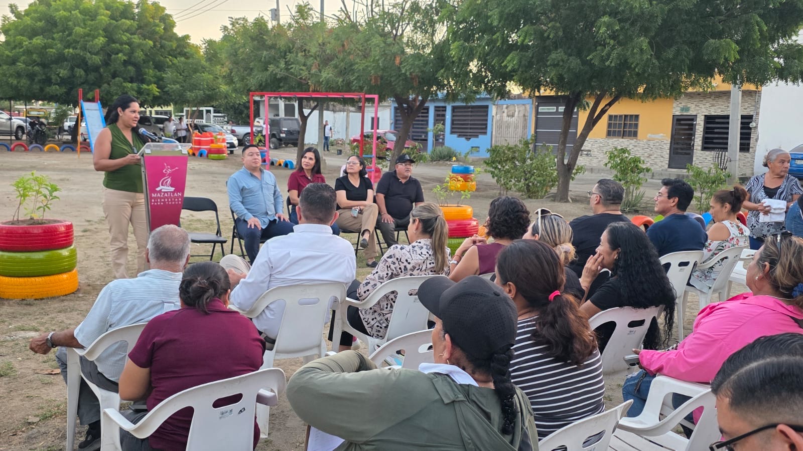 “Muy contenta de saludarlos y ser portadora de un gran saludo de nuestra Presidenta Estrella Palacios, la cual ahorita está trabajando duramente por el beneficio de todo el municipio de Mazatlán, y de cada uno de nosotros. Nos encarga mucho desde el primer día de gestión que Servicios Públicos pueda brindar la convivencia social, lo que decía nuestra Síndica Procurador y aquí su representante, de fortalecer el tejido social con la convivencia, creando experiencias, recuerdos, anécdotas”, dijo.
