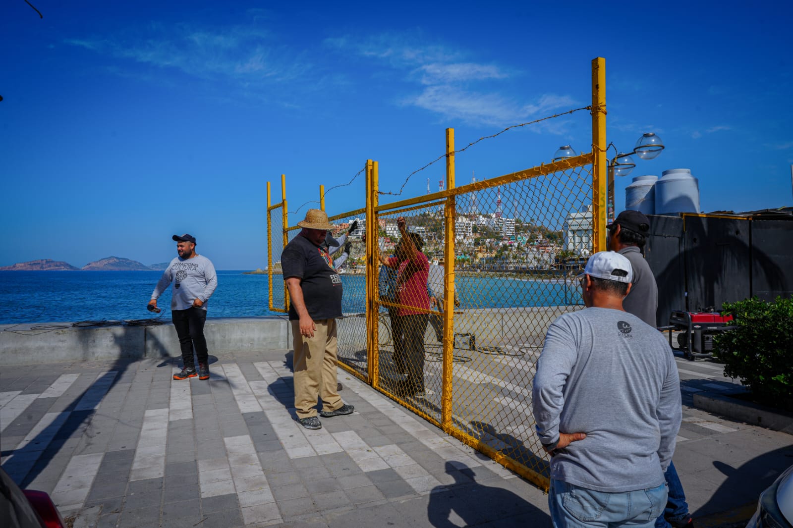 Mazatlán, Sinaloa, 2 de febrero de 2026.- Para delimitar la zona carnavalera en Olas Altas este lunes 2 de febrero, personal de la Dirección de Operaciones del Instituto de Cultura de Mazatlán instaló las rejas en las calles colindantes con lo que busca agilizar la entrada y tener control en las puertas de acceso durante la máxima fiesta programada del 12 al 17 de febrero.