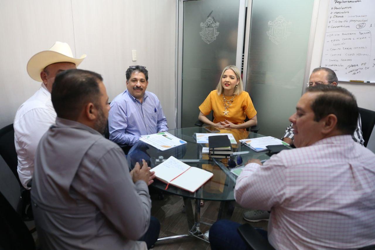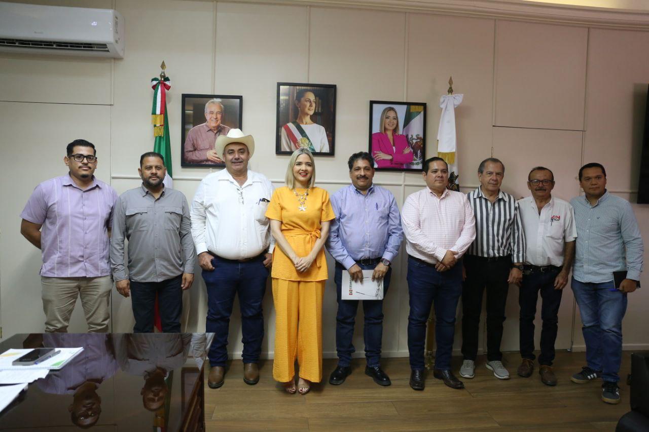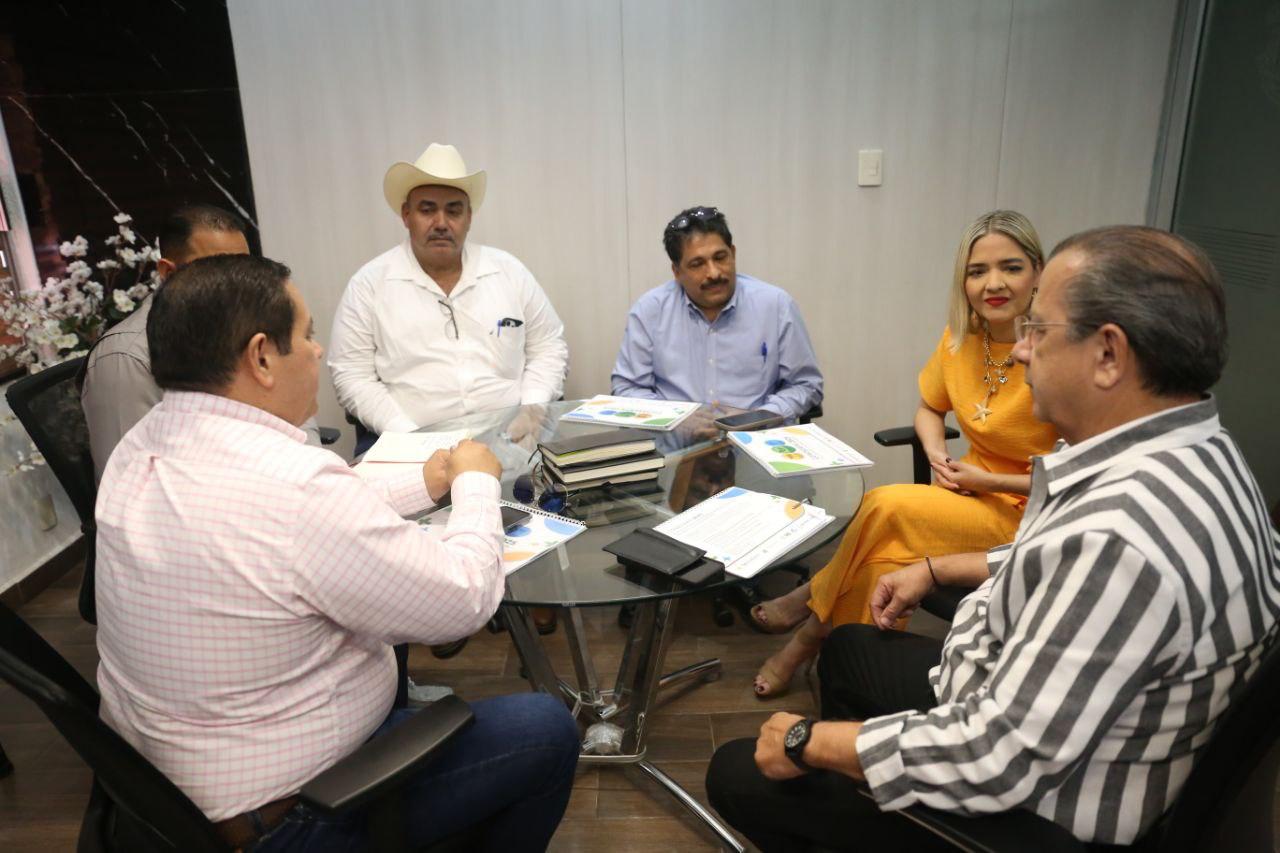 Estrella Palacios recibió a Hugo Francisco Sandoval López, Presidente del Comité Estatal de Fomento y Protección Pecuaria; Julian Lugo Esparza, Presidente del Comité Estatal de Sanidad Vegetal; Jesús Óscar Vidales Torres, en representación del Comité Estatal de Sanidad Acuícola y José Antonio Rivera Lizárraga, Presidente de la Asociación Ganadera de Mazatlán. También estuvieron presentes en la reunión, el Secretario del Ayuntamiento, Moisés Ríos Pérez; y en representación del Secretario de Desarrollo Económico y Turismo de Mazatlán, Alí René Zamudio Garza, asistieron Hugo Espinoza, enlace de pesca y Sergio Ortega, enlace y coordinador de control y seguimiento.