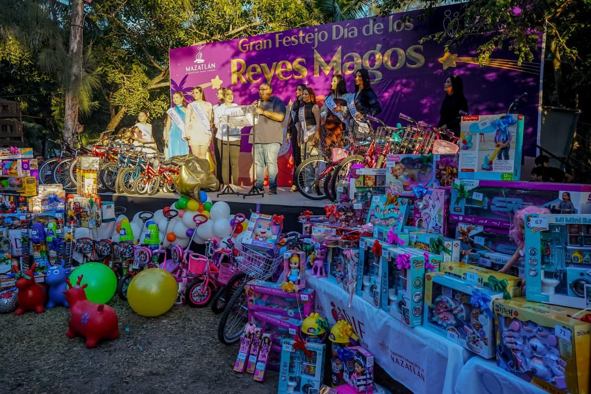 Invitados por el Gobierno local, los candidatos y candidatas acompañaron a la Presidenta Municipal de Mazatlán, Estrella Palacios Domínguez, durante la celebración del Día de Reyes en el Parque Central, sitio donde se logró reunir alrededor de 30 mil personas.
