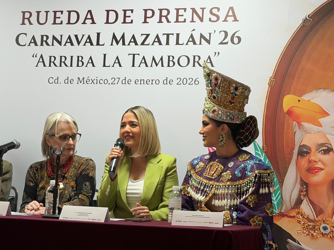 Mazatlán, Sinaloa, 27 de enero de 2026.– La mañana de este martes, la Presidenta Municipal de Mazatlán, Estrella Palacios Domínguez, participó en una rueda de prensa en la Ciudad de México para promocionar el Carnaval Internacional Mazatlán 2026, “Arriba la Tambora”, que se celebrará del 12 al 17 de febrero, uno de los eventos culturales y turísticos más importantes del país.