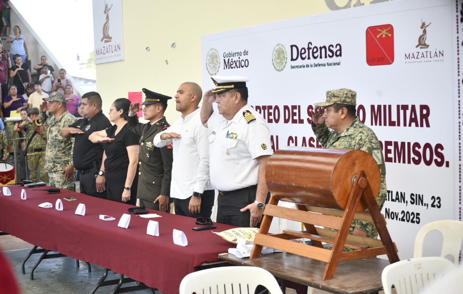 El Gobierno Municipal de Mazatlán, que encabeza la Presidenta Estrella Palacios Domínguez, a través del Departamento de Junta Patriótica y Reclutamiento, realizó este domingo el sorteo del Servicio Militar Nacional para los jóvenes de la Clase 2007 y Remisos. En total se contabilizaron 1,444 cartillas, de las cuales 300 resultaron con bola azul, 14 con bola negra —equivalentes al 1% del total— y 1,130 con bola blanca.