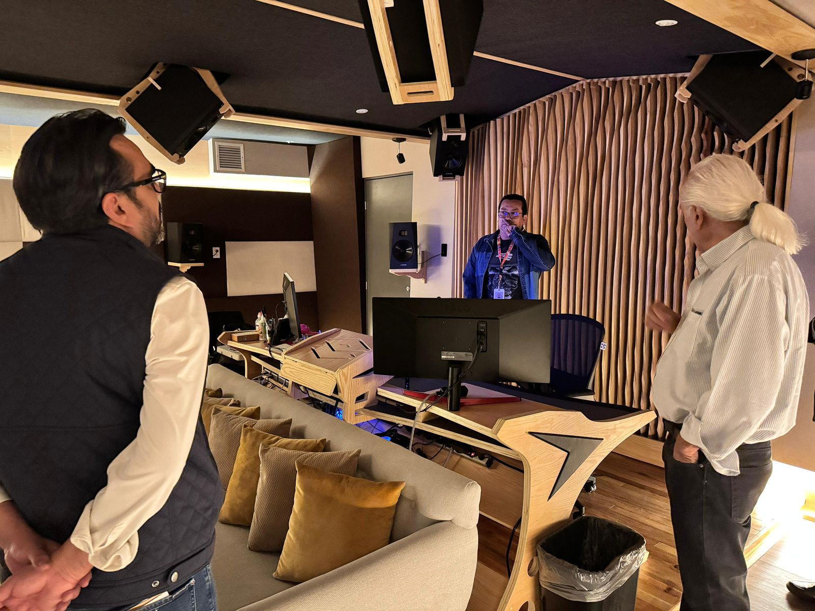 Durante el recorrido, Calónico Lucio mostró todo el equipo de alta tecnología con el que cuentan para la realización de producciones, doblaje de películas de Hollywood y series de todo tipo de plataformas.