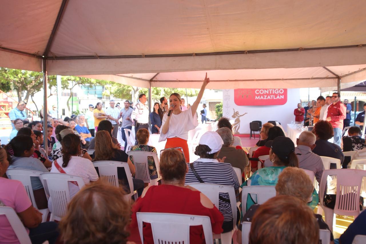 Durante su mensaje, Palacios Domínguez subrayó que los miércoles de “Contigo Mazatlán” son de escuchar y atender al ciudadano. «Me siento muy orgullosa de la convocatoria, de la confianza de que venga tanta gente a estas atenciones ciudadanas que tenemos en diferentes partes de todo Mazatlán, vamos a la zona urbana, a la zona rural, a diferentes colonias, diferentes comisarías, y siempre lo que buscamos es que todas esas peticiones, que veo carpetas que traen en su manos, algunas situaciones que hay aquí en la colonia, se puedan resolver», expresó.