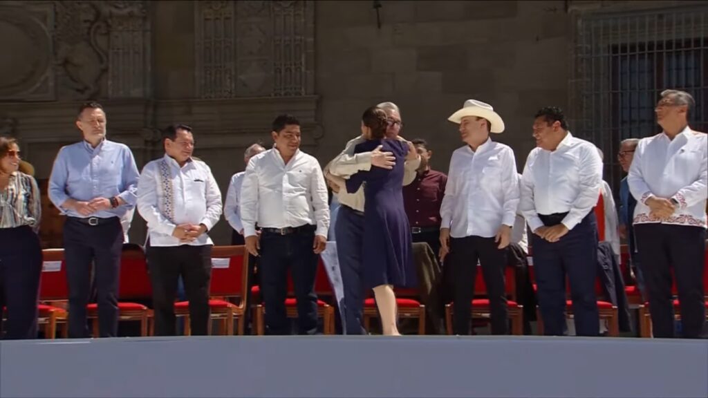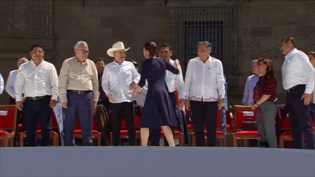Así como lo hizo desde que se tensaron las relaciones entre los gobiernos de Estados Unidos y México, Rocha Moya reiteró a la presidenta su respaldo y su respeto por el liderazgo asumido con firmeza, para hacer valer la soberanía de México ante ése y cualquier otro país.