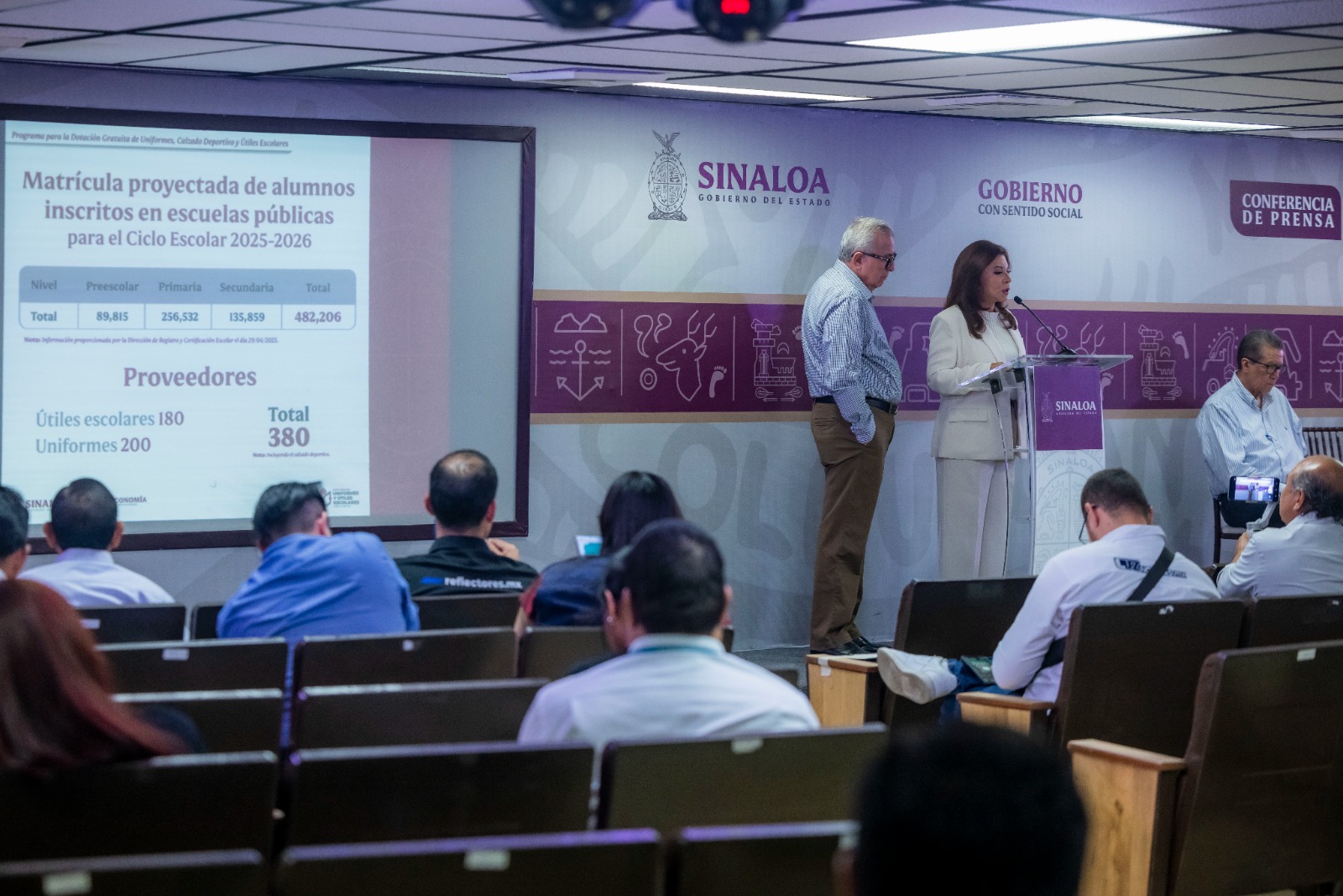 El anuncio del inicio de canje. junto con el de calzado deportivo para niños de preescolar, a través de 80 centros de canje, fue hecho en conjunto con la Secretaria de Educación Pública y Cultura, Lic. Gloria Himelda Félix Niebla, con los datos técnicos del programa para el Ciclo Escolar 2025-2026.