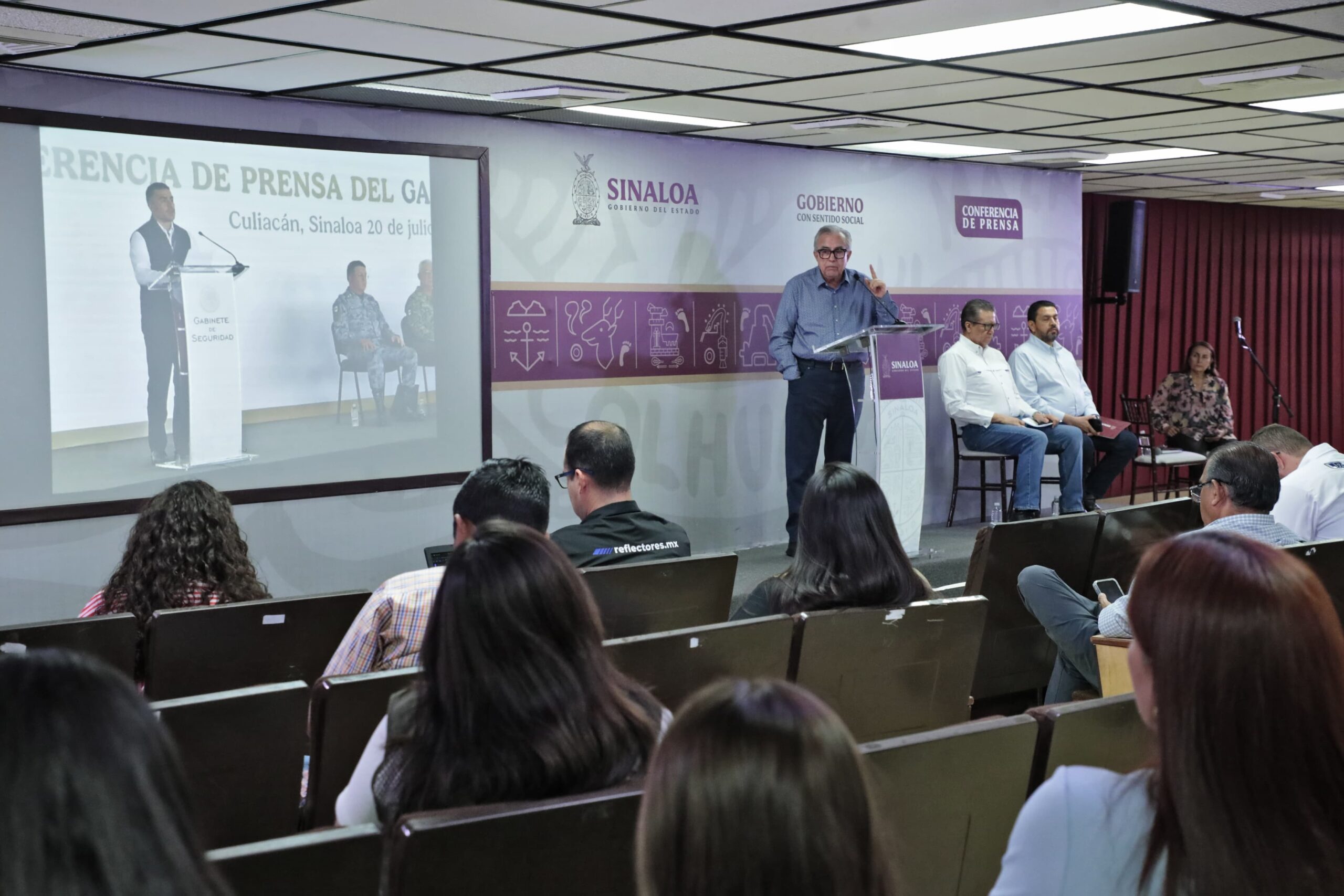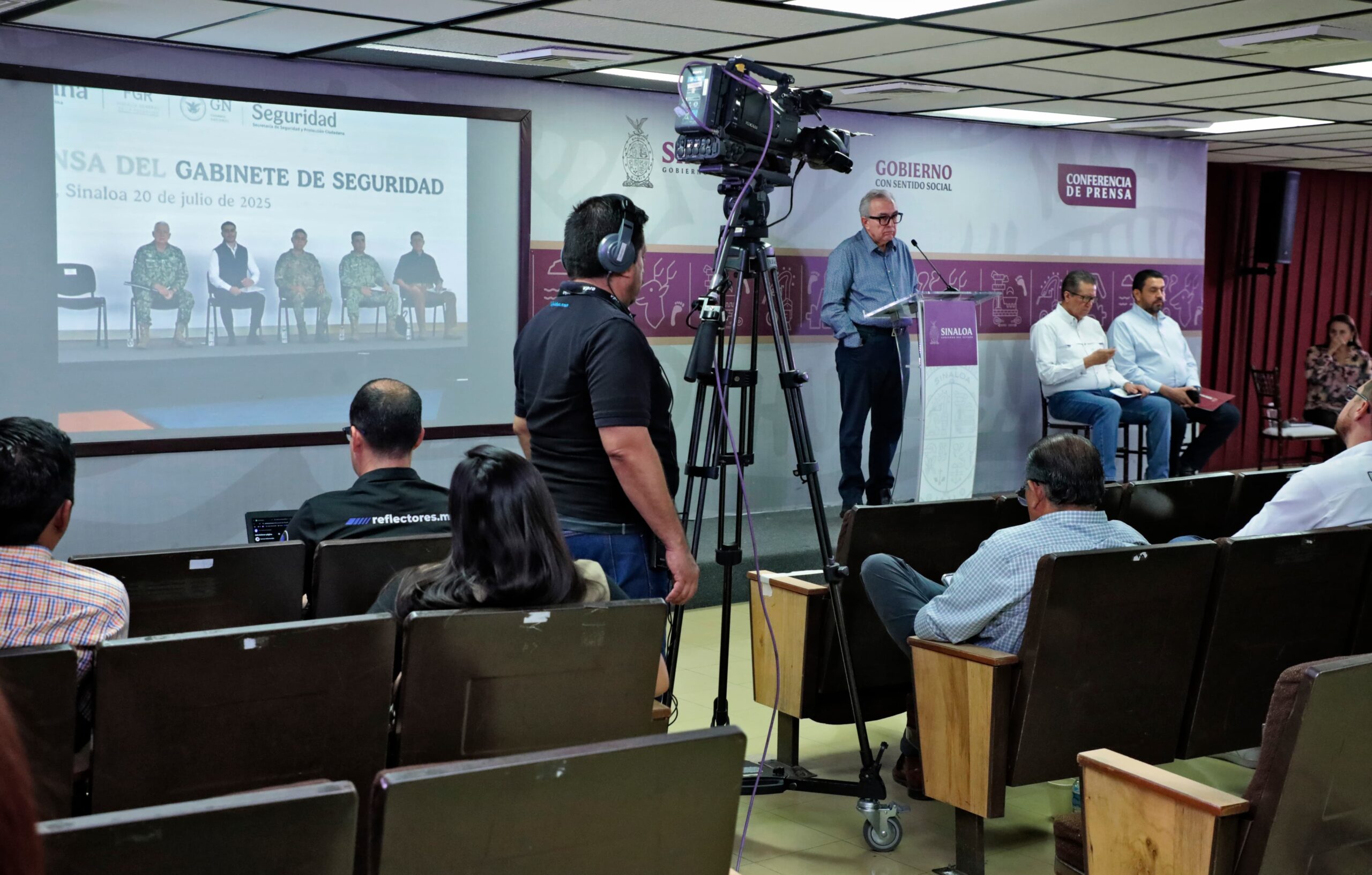 Culiacán, Sinaloa, a 21 de julio de 2025.- En el marco de la reciente visita del Gabinete de Seguridad Federal a Sinaloa, se reiteró la prioridad de la Presidenta de la República, Claudia Sheinbaum Pardo, por fortalecer la seguridad estatal a través de tecnología, recursos, nuevos elementos y equipamiento, precisó este lunes el Gobernador Rubén Rocha Moya durante su Conferencia Semanera.