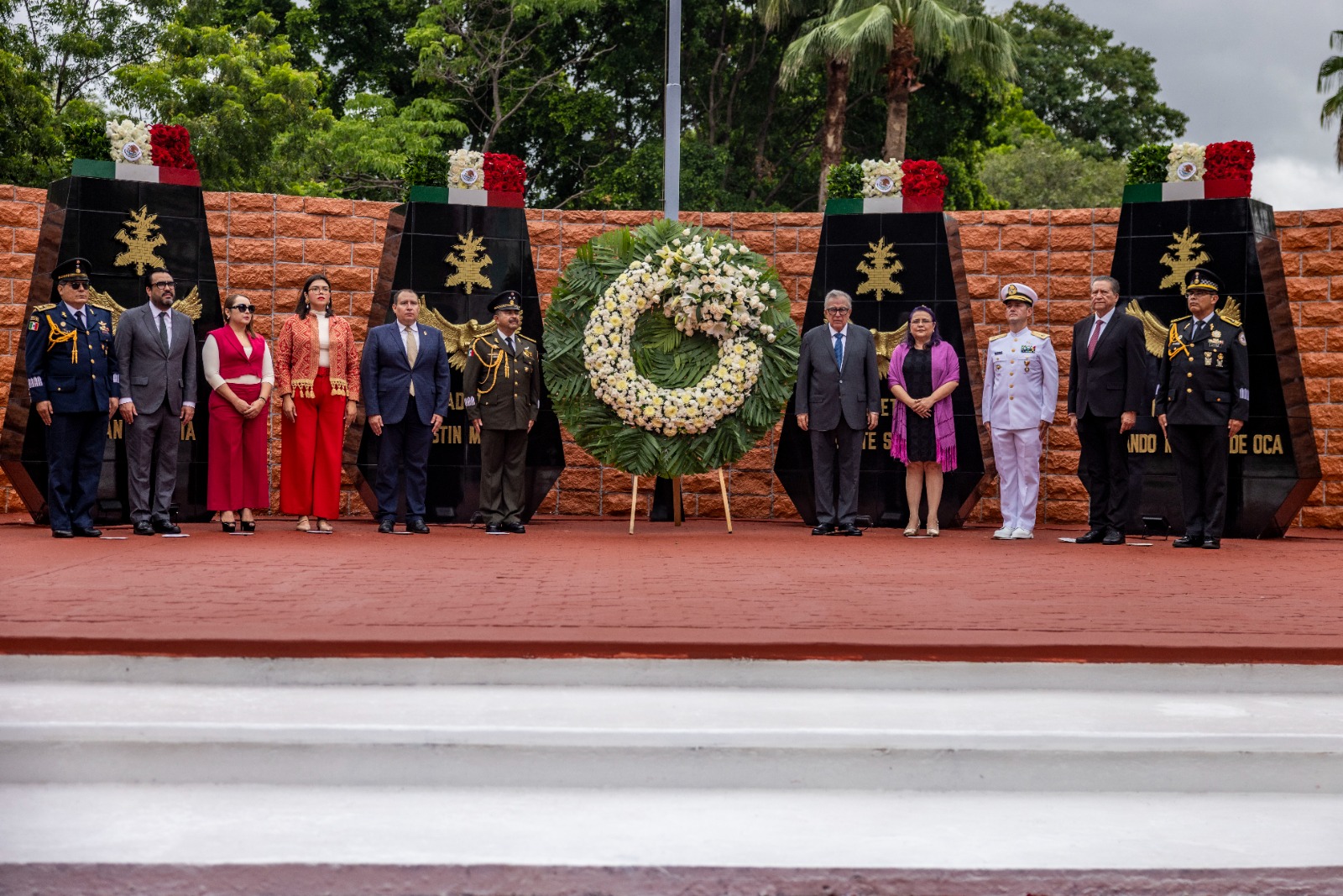 El mandatario estatal acompañó a los jefes castrenses y autoridades civiles en la colocación de la ofrenda floral en honor a quienes ofrendaron su vida en la Defensa de la patria.