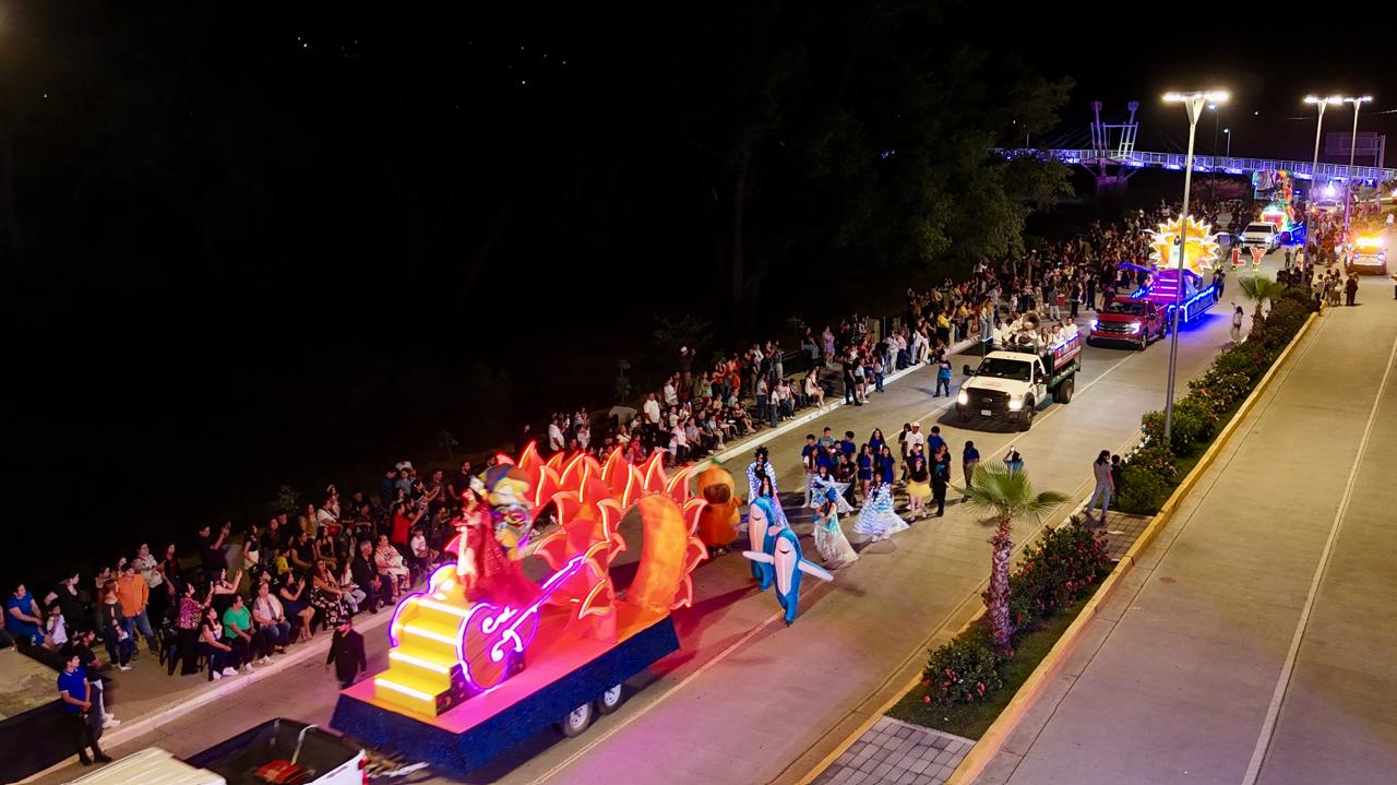 El mandatario estuvo acompañado por la secretaria de Turismo, Mireya Sosa Osuna y el alcalde José Paz López Elenes, en un ambiente de tranquilidad y sano esparcimiento familiar en el que los asistentes admiraron el pasar de los carros alegóricos al ritmo de la música.