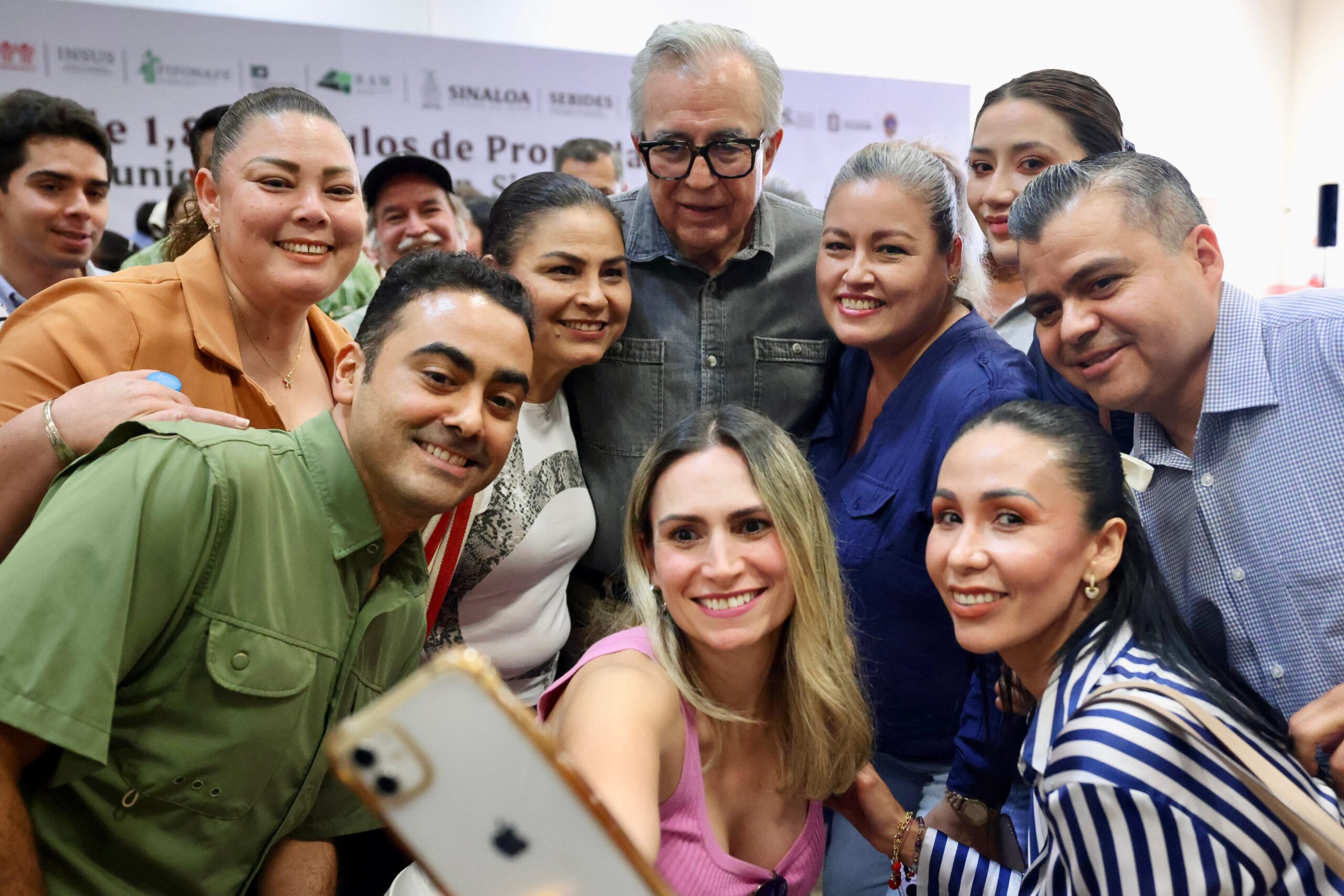 Acompañaron también al gobernador Rocha en este evento, además de la secretaria María Inés Pérez Corral, quien fue la encargada de dar la bienvenida, el presidente municipal de Culiacán, Juan de Dios Gámez Mendívil; el representante regional de INSUS, Crisantos Cebreros Favela; la delegada del RAN en Sinaloa, Leticia Bori Torres; el director de Catastro, Eduardo Alarcón López; el director del Registro David Eduardo Vargas; el representante de la Procuraduría Agraria, Jesús Adolfo Soto Flores; y el titular de la Comisión de Vivienda del Estado de Sinaloa, Francisco Antonio Castañeda Verduzco.