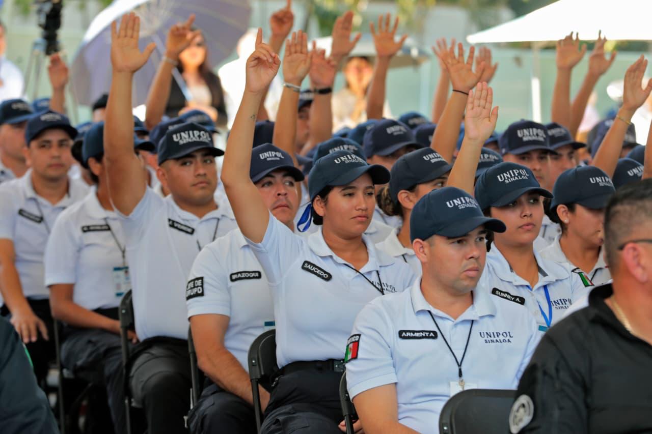 Acompañaron al Gobernador Rocha, Santos Gerardo Soto, comandante de la Novena Zona Militar, Julices Julián González, coordinador estatal de la Guardia Nacional; Yeraldine Bonilla Valverde, secretaria General de Gobierno; Juan de Dios Gámez, alcalde de Culiacán; Óscar Rentería Schazarino, secretario de Seguridad Pública; Víctor Luis Soto, Fiscal estatal de la Fiscalía General de la República; Efrén Ortega Espinoza, de la Cuarta Región Naval; Claudia Zulema Sánchez, Fiscal General del Estado, así como cadetes de la Universidad del Policía y elementos de las distintas corporaciones de seguridad.