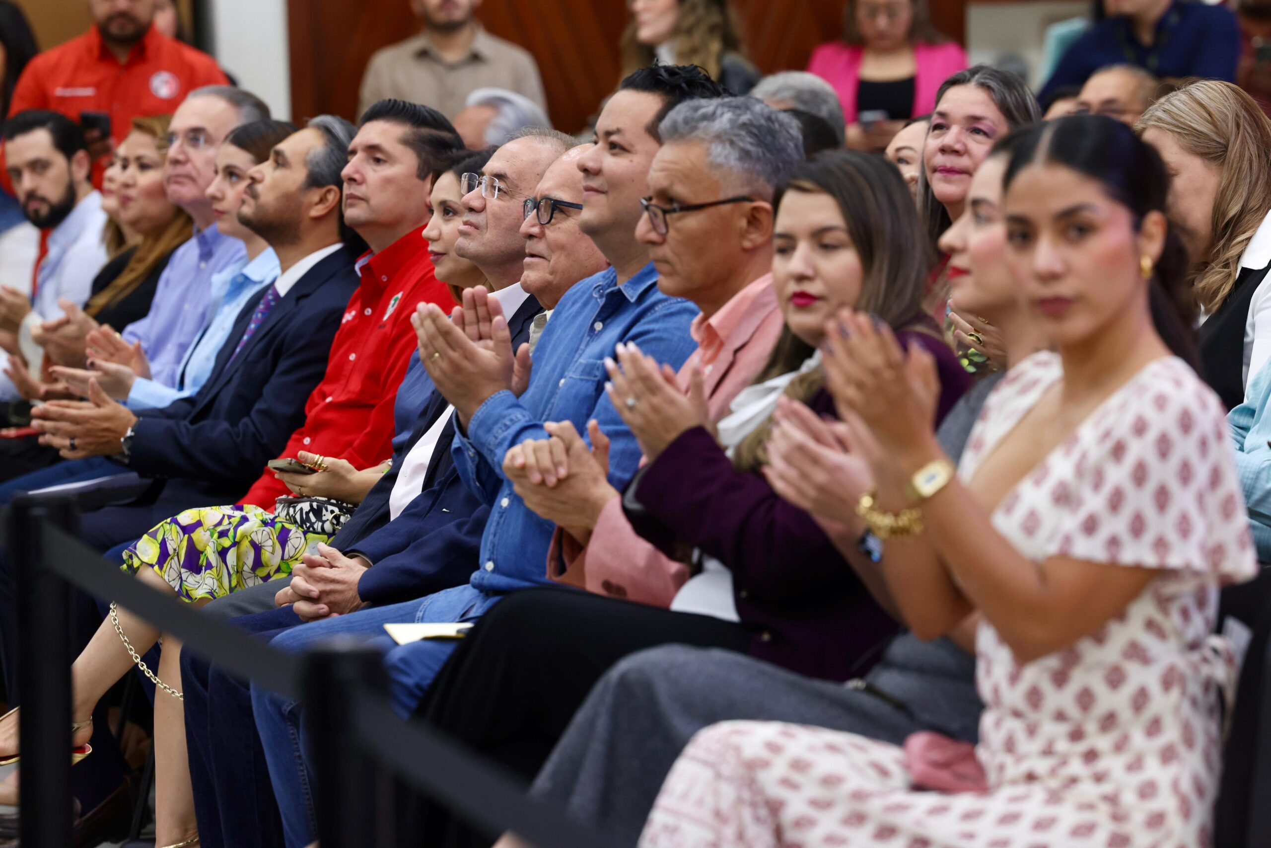 “Quiero destacar también que este acto no sería posible sin la visión humanista y comprometida del gobernador, el doctor Rubén Rocha Moya, quien ha impulsado políticas públicas que colocan a las personas en el centro de la acción de gobierno, especialmente a quienes más lo necesitan”, dijo.