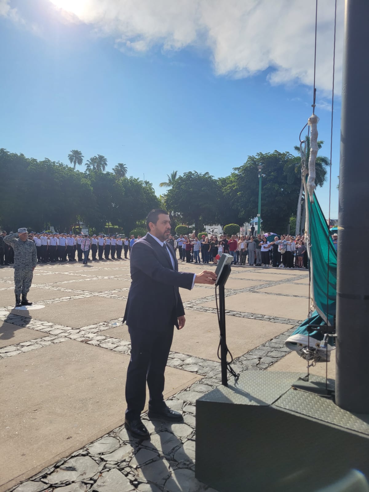 Después del izamiento del lábaro patrio, Bello Esquivel, con la representación del Gobernador Rubén Rocha Moya y acompañado de las autoridades civiles y militares escucharon una remembranza del Benemérito de las Américas, en donde se destacó la máxima que acuñó y que hoy en día se mantiene vigente: “Entre los individuos como entre las naciones, el respeto al derecho ajeno es la paz”.
