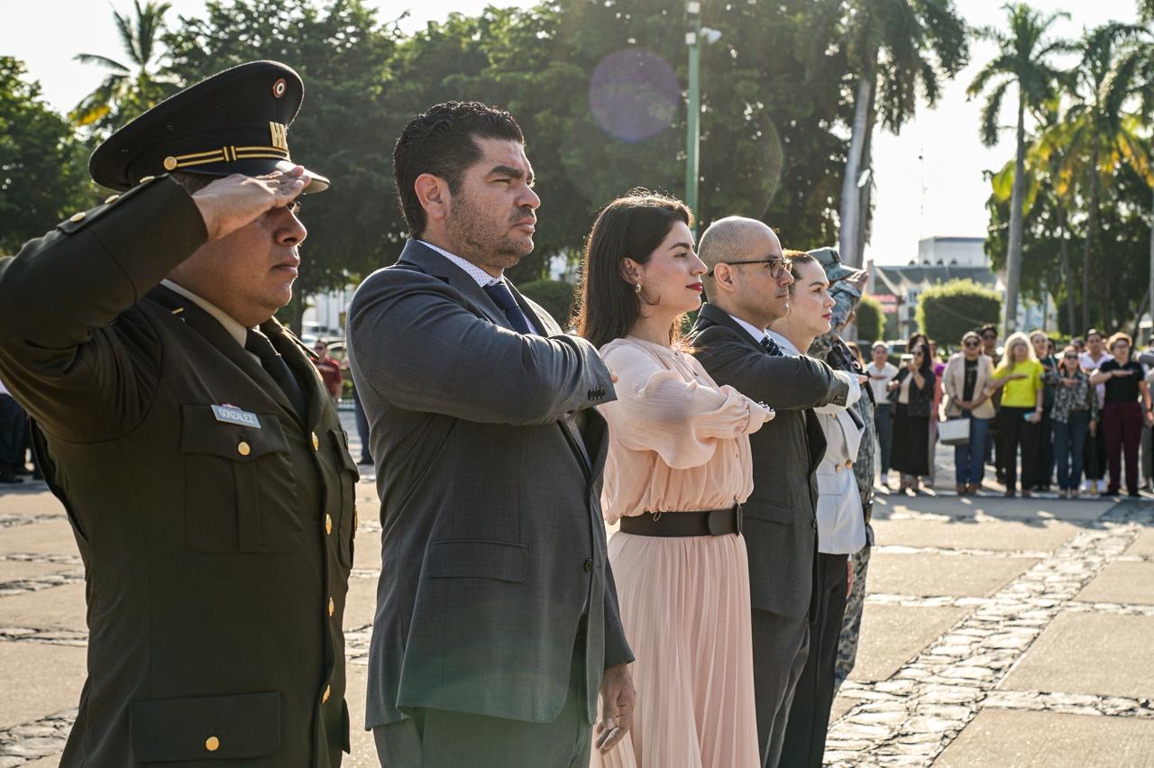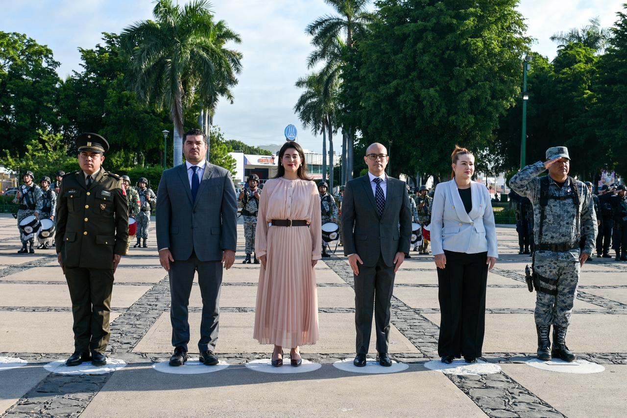 En este acto cívico estuvieron presentes el Dip. Rodolfo Valenzuela Sánchez, Presidente de la Mesa Directiva del H. Congreso del Estado; el Dr . José Ramón Bohon Sosa, Secretario Técnico del Supremo Tribunal de Justicia; Lcda. María Elena Armenta de la Rocha , Secretaria de las Mujeres del H. Ayuntamiento de Culiacán; Capitán 1/o. I NTDTE. German González Córdova , Representante de la 9/a. Zona Militar; Cap. 2/o. F.A.E.E.A. Militar No. 10 en Sinaloa y José Alberto Arroyo Simón, Representante de la Base Aérea.