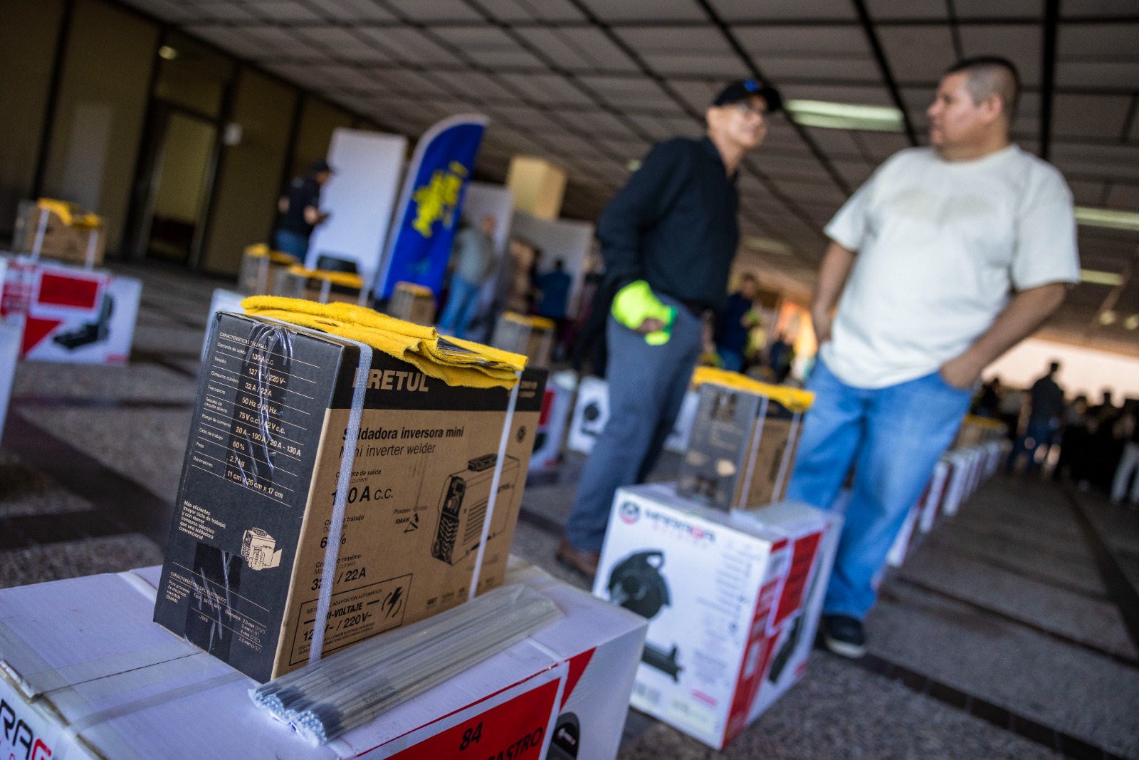 En total se beneficiaron a 150 mujeres y hombres a quienes se les hizo entrega de 740 equipos valuados en 1.2 millones de pesos para diversos oficios, como carpintería, herrería, plomería y electricidad