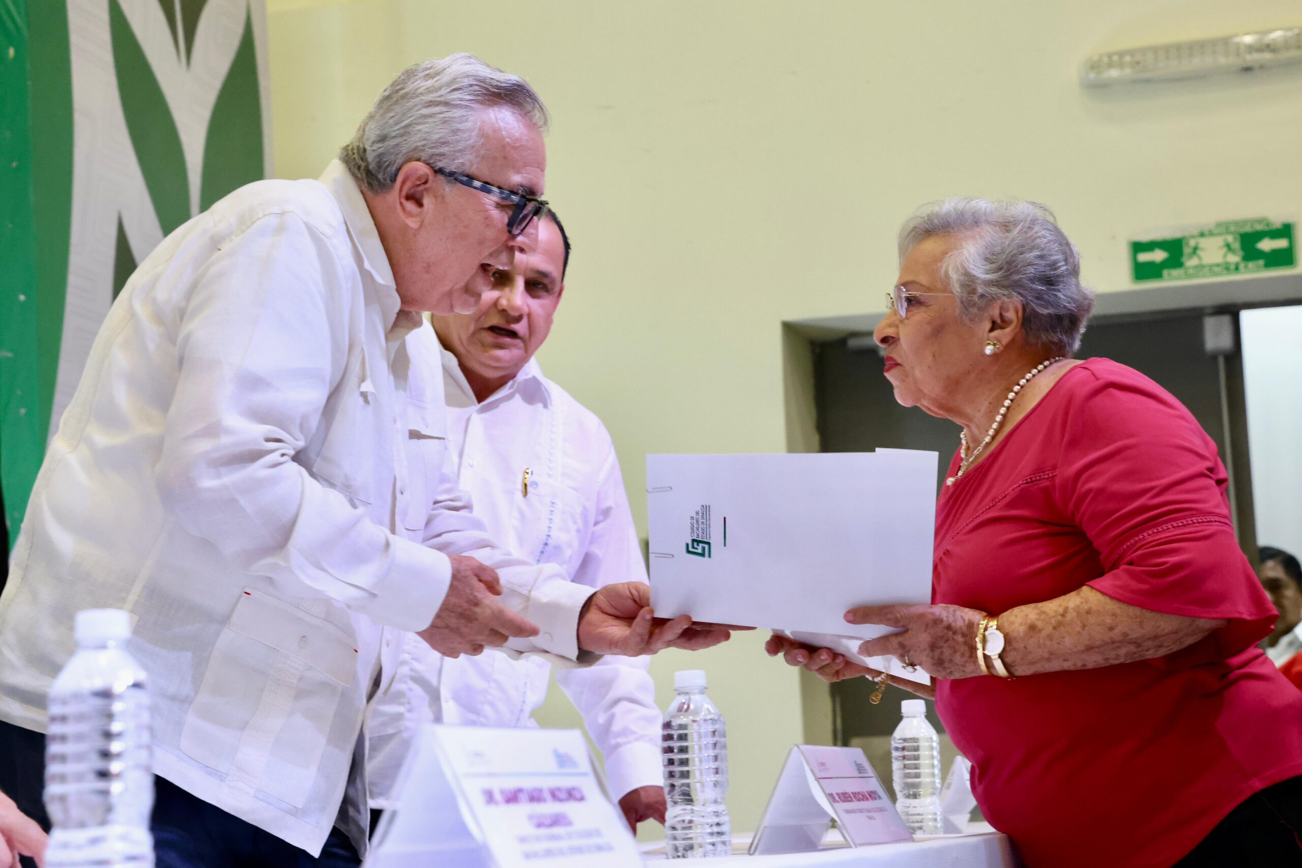 Acompañaron al gobernador Rocha, María Elena García en representación de los jubilados, así como funcionarios de COBAES, y familiares de trabajadores congratulados.